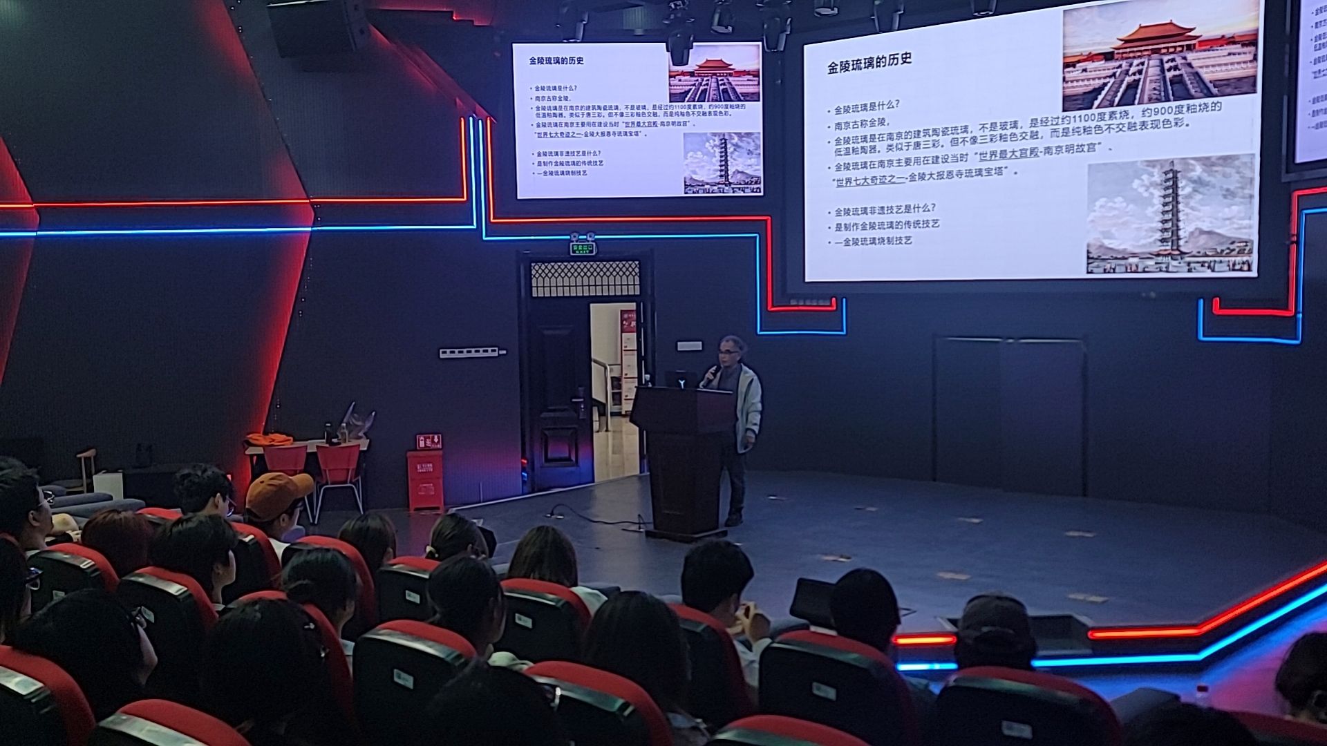 杨联伟教授作为金陵琉璃的非遗传承人,从金陵琉璃的历史、金陵琉璃非遗技艺与工具、金陵琉璃御窑结构与烧成、金陵琉璃制作体验、金陵琉璃非遗复原技艺、金陵琉璃与现代产业的关系等六个方面讲述,重点剖析了金陵琉璃非遗技艺、金陵琉璃与现代多个领域产业的关系这两方面,以金陵琉璃的非遗技艺为主线,围绕历史发展、非遗技艺、工具运用、烧成结构、制作体验、复原技艺展开详尽的论述。他结合多年的金陵琉璃领域的非遗传承经验,从多项经典的非遗体验案例中给师生娓娓道来,为大家讲述了非遗传承、非遗体验如何与当下的产业实践结合应用,面向博物馆非遗活化、现代首饰产业、现代装饰和照明产业、现代文旅和日用品产业以及现代养老康养产业,将非遗技艺的传承和保护融入到产业的发展和需求中,真正赋予非遗传承生命力。