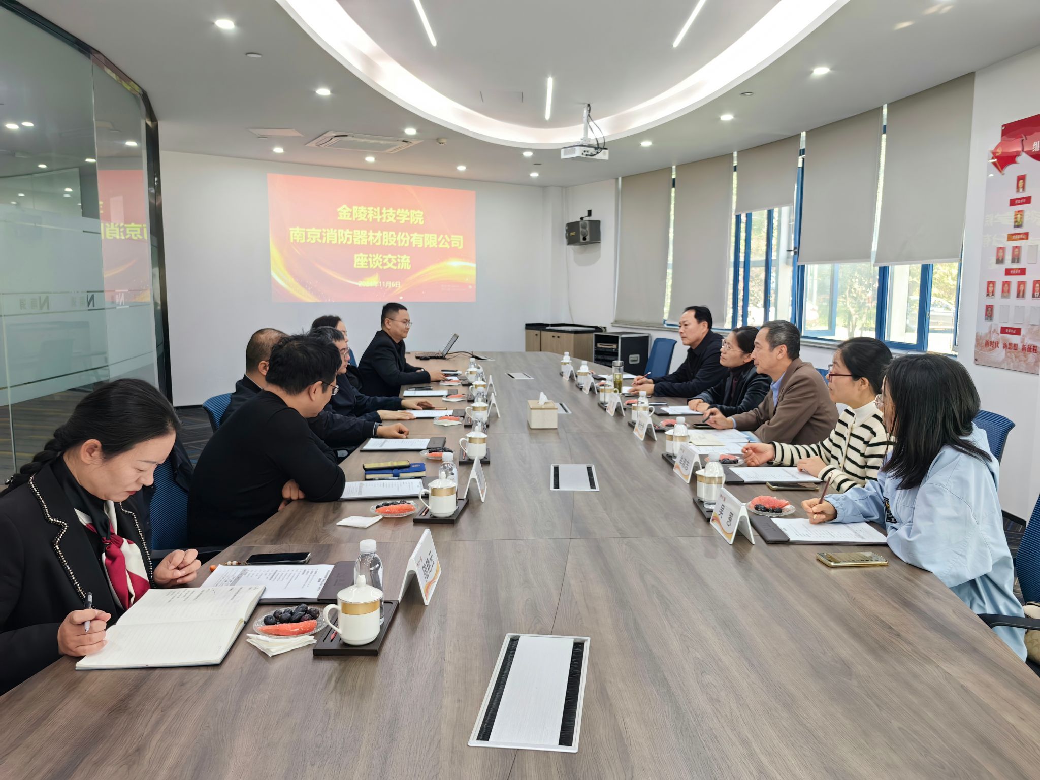沈瑾对南消公司在消防安全产品创新与高精尖消防技术研发方面所取得的成就给予高度评价,对南消公司一直以来对学院发展提供的支持帮助表示感谢,同时期待双方以省研究生工作站建设为契机,对标行业对新工科2.0应用型复合人才的需求,继续深化校企产教融合建设,发挥企业实践平台优势,提升人才培养质量,为培养绿色建筑与建筑智能化方向复合型人才奠定基础。