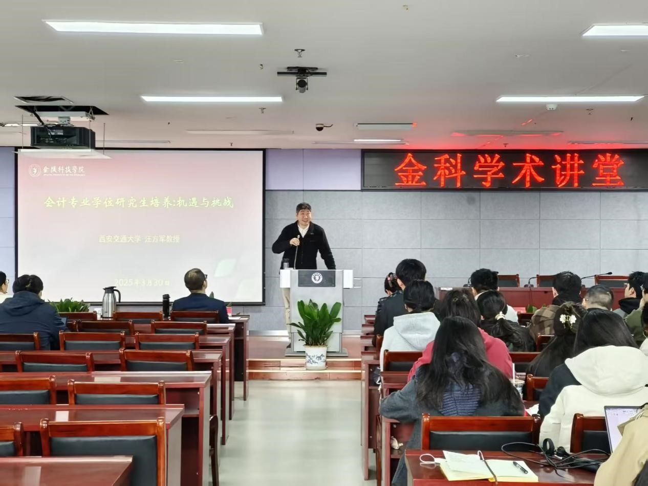 3月30日,2025年第9期金科学术讲堂暨商学院2025年第1期“望心湖研究生名家讲坛”在江宁校区科技楼3号楼313会议室顺利举行。本期讲堂特别邀请到西安交通大学汪方军教授,为kaiyun官网师生带来题为《会计专业学位研究生培养:机遇与挑战》的专题讲座。商学院院长刘磊、部分科研骨干教师以及全体专硕研究生共50余人参加了此次讲座,讲座由商学院副院长黄阳主持。