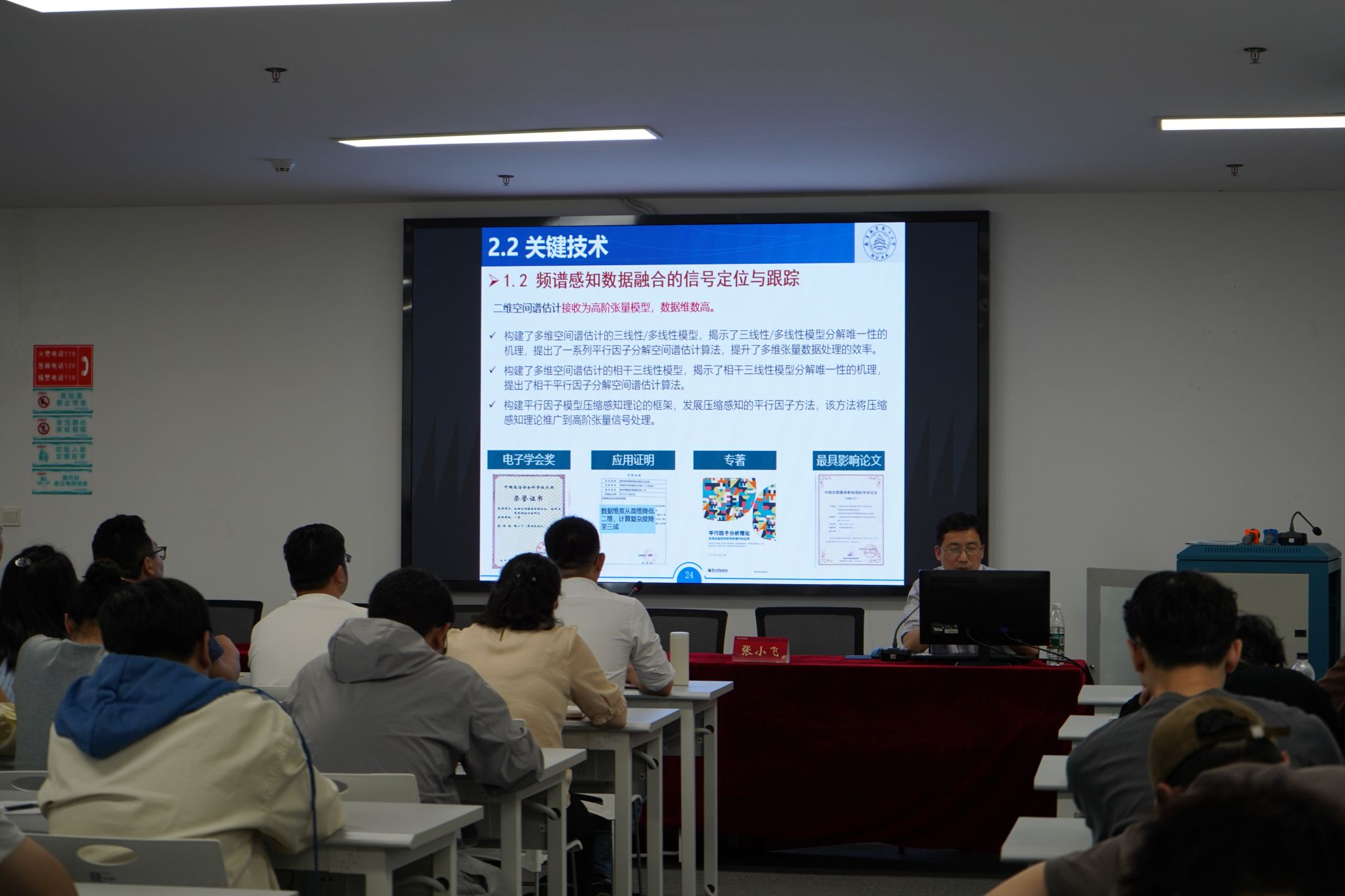 围绕“多域探测”这一核心问题,张小飞系统讲解了融合雷达、光电、声学等多种传感器信息进行群体目标感知的基本原理与关键技术路径,重点分析了信号处理、数据融合与目标识别等环节的前沿进展和所面临的技术瓶颈。他结合多个实际工程项目和研究案例,详细介绍了多域信息协同处理在复杂电磁环境和强干扰条件下的优势与效果。互动环节,张小飞细致解答师生问题,并鼓励大家结合实际科研工作深入思考、勇于创新。