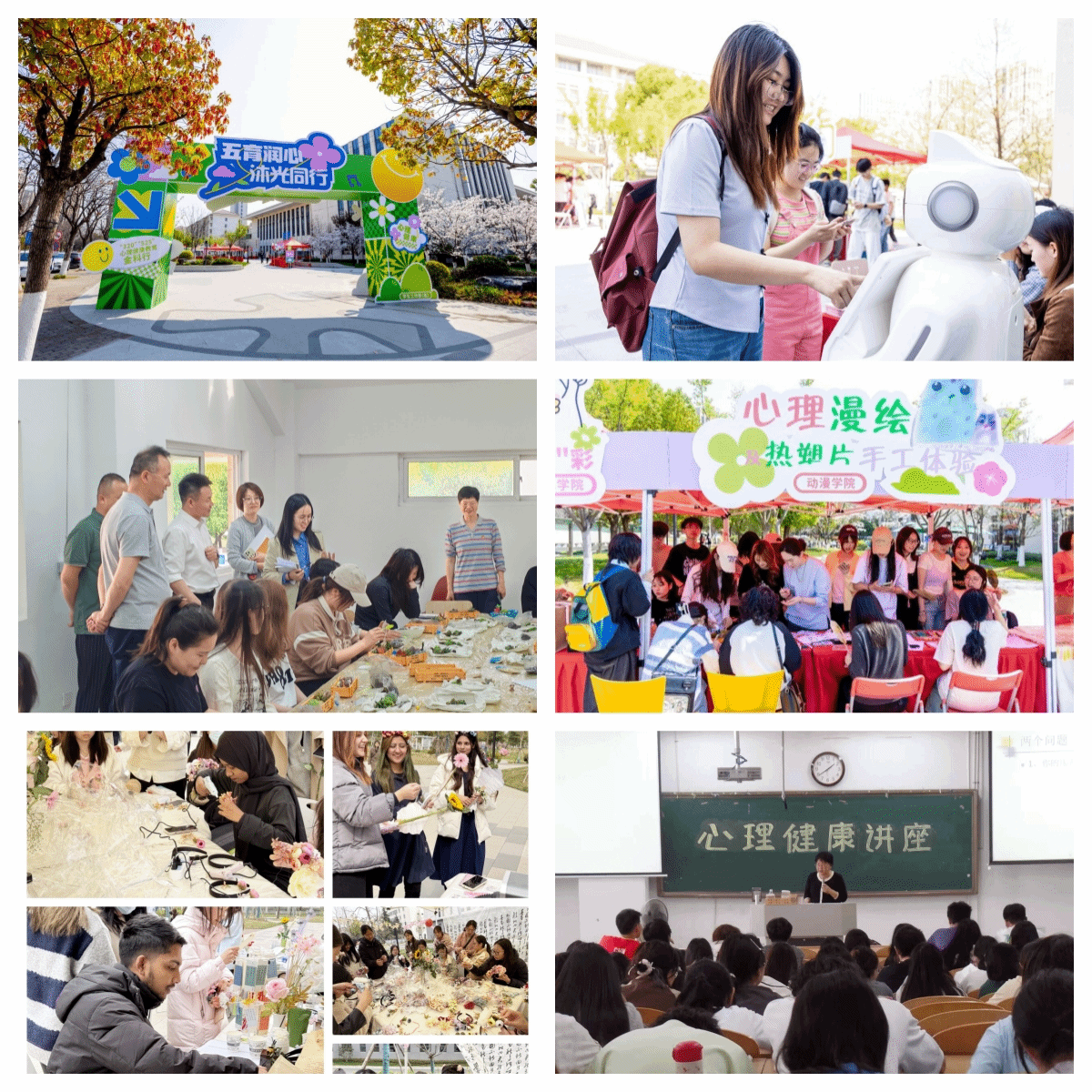 为丰富学生的校园生活,校学生心理健康教育中心举办首届心理嘉年华暨2025“五育润心 沐光同行”心理健康教育金科行开幕式,并创新引入AI心理机器人,以科技赋能心理健康教育,突破传统咨询的时空壁垒;精心组织“战鼓为谁而响?大学生的自我成长”“看《头脑特工队》 学习情压管理”“压力——敌人 or 朋友”和“心理委员专业素养与成长‘吹哨人’”4场心理健康教育主题讲座和《人生剧本,由我执笔》《“园艺润心,花艺共生”微景观制作》等15场团体心理辅导。各学院还积极承办如“‘漫塑工坊’心理漫绘热塑片体验活动”“‘艺润心灵,逐光前行’心理创意手工制作”“‘关于生活’三行诗DIY”“‘春日疗愈,花开心香’簪花、香囊手工活动”等全校性活动18场。学校积极构建“互动+体验+浸润”的多彩活动模式,精准对接学生兴趣点,引导学生在主动参与和深度体验中找到归属感与成长支点,有效构建了全员心理育人网络,守护学生心理健康。