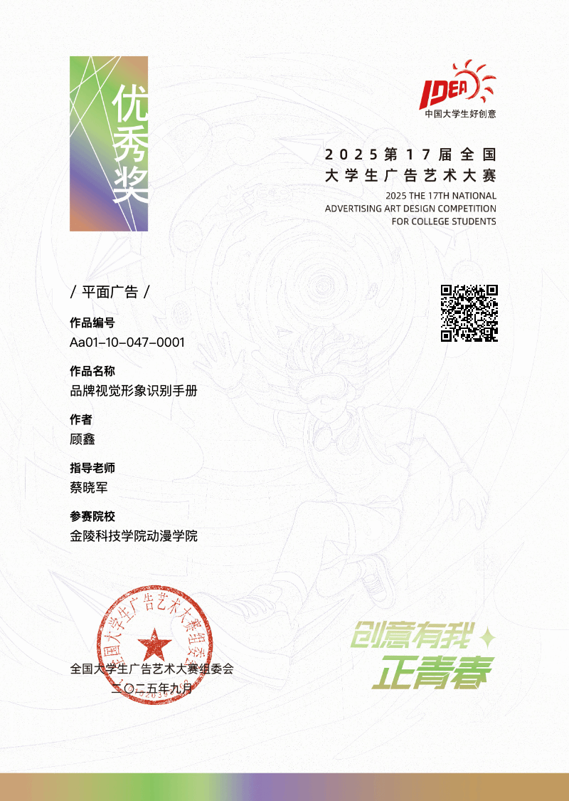 第十七届全国大学生广告艺术大赛圆满落幕,kaiyun登录中国入口登录动漫学院学生再创佳绩,荣获国赛二等奖 1 项、优秀奖 2 项,以及省赛二等奖 2 项、三等奖 2 项、优秀奖 6 项,共计 13 项,充分展现了学院在创意设计与实践育人方面的成果。