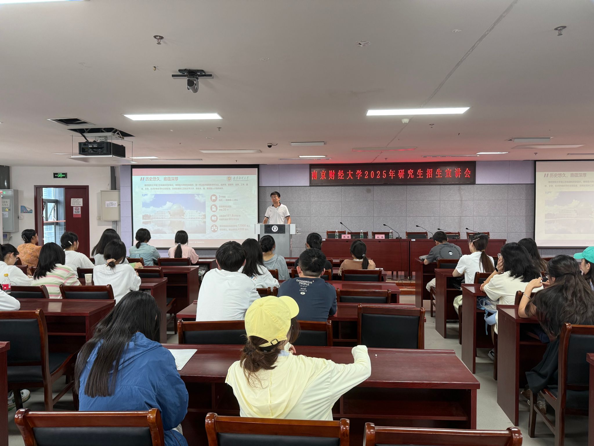 徐立岗代表商学院对南京财经大学两位宣讲人员的到来表示热烈欢迎。姚雨辰简要介绍了双方院校长期以来建立的友好交流关系,并强调本次宣讲会为金科学子提供了一个宝贵的一站式信息平台,有助于同学们更直接、更全面地了解报考院校和专业详情,做出更符合自身发展的学业规划。