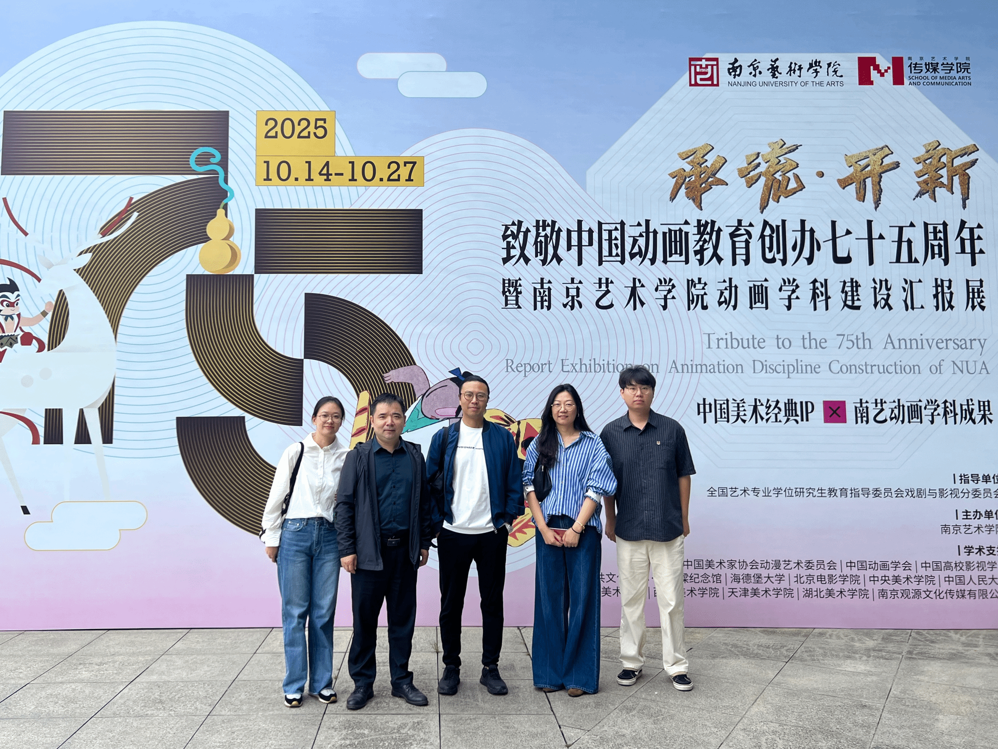 围绕切实做好“十五五”发展规划制定,进一步提升动漫学院动画专业发展质量,打造南京动漫图书馆、南京动漫科普馆发展特色,10月17日,动漫学院赴南京艺术学院、江苏省美术馆调研参观“承流·开新——致敬中国动画教育创办七十五周年暨南京艺术学院动画学科建设汇报展”和“东方光影志:美术片《大闹天宫》跨媒介艺术展”。动漫学院院长王贤波、动画系主任张园园、实验中心主任钱晨等共同参与此次调研学习活动。
