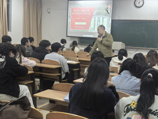 在图教楼202教室的专场宣讲会上,吉克朋从企业发展、企业文化、岗位需求、人才标准及培养体系等方面对天农食品集团进行了全面介绍,并通过宣传片向在场学生展示了企业的工作环境、员工发展路径及薪酬福利。互动环节,同学们就专业对口、人才素质要求、职业发展机会等问题与企业代表进行交流,进一步明确了职业方向,增强了就业选择的针对性。