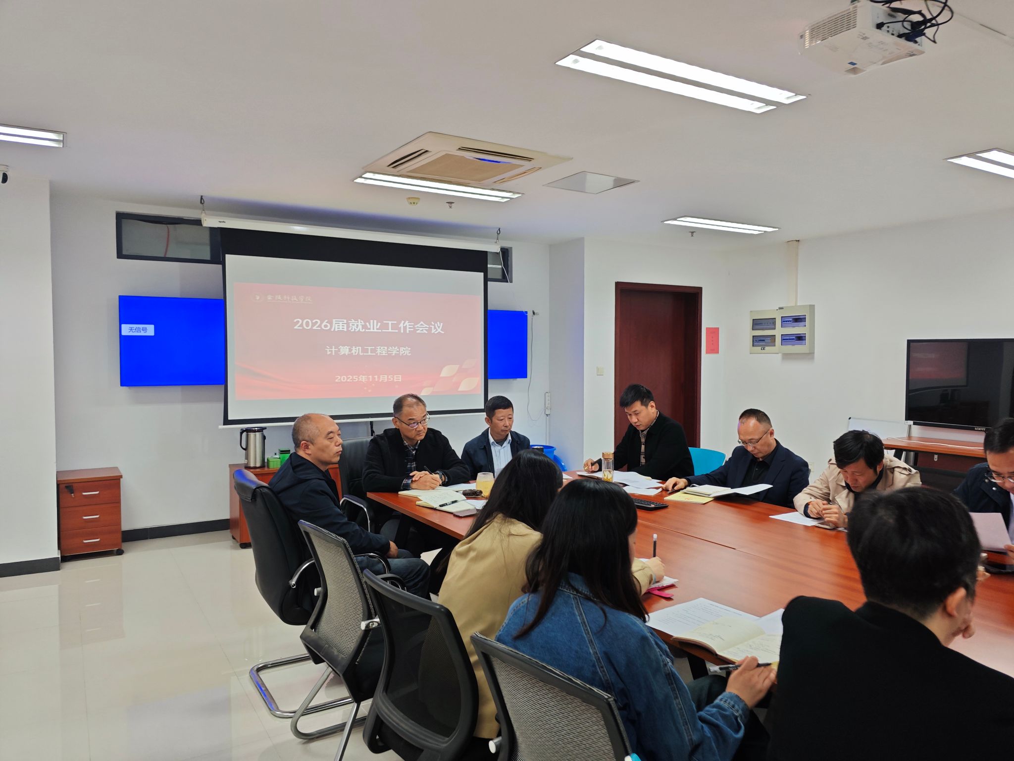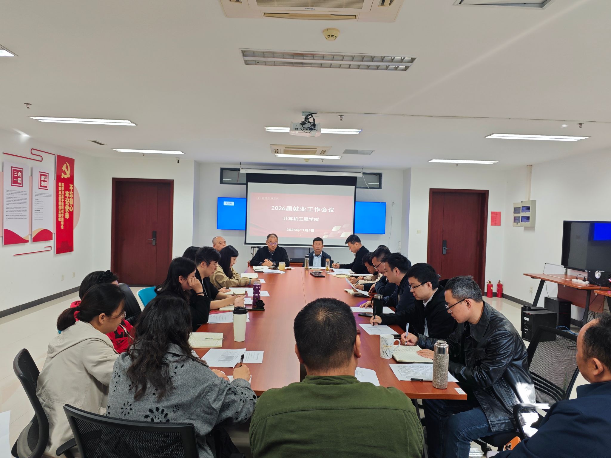 11月5日上午,计算机工程学院在2号科技楼707会议室举行2026届毕业生就业工作启动大会。学院领导班子,各系部正、副主任,2025届班主任代表,2026届毕业班辅导员及全体班主任共同参会。会议由院党委副书记张昊主持。