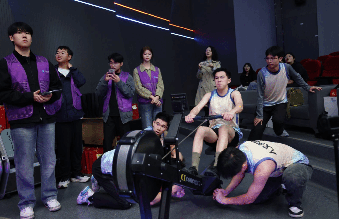 本次比赛首创“AI+体育”办赛模式,依托学校自主研发的“元体乐水-陆上赛艇赛训一体化服务平台”,实现5G+北斗双时钟同步、AI动作捕捉、大数据可视化与元宇宙直播。平台由软件工程学院、动漫学院与体育部师生共同开发,江苏省数字水上运动研究中心提供技术保障,为高校数字体育提供了可复制、可推广的“金科方案”。