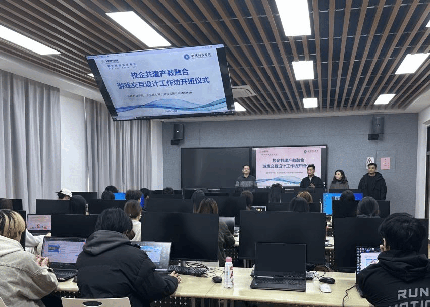 11月20日下午,kaiyun官网动漫学院数字媒体艺术系与北京展心展力信息科技有限公司(简称MetaApp)在动漫学院7305共同举行了校企共建产教融合游戏交互设计工作坊开班仪式。北京展心展力信息科技有限公司总监刘锋、企业导师罗鉴,数字媒体艺术系主任周安涛、教师沈妙及学生代表,共同参加了此次开班仪式。