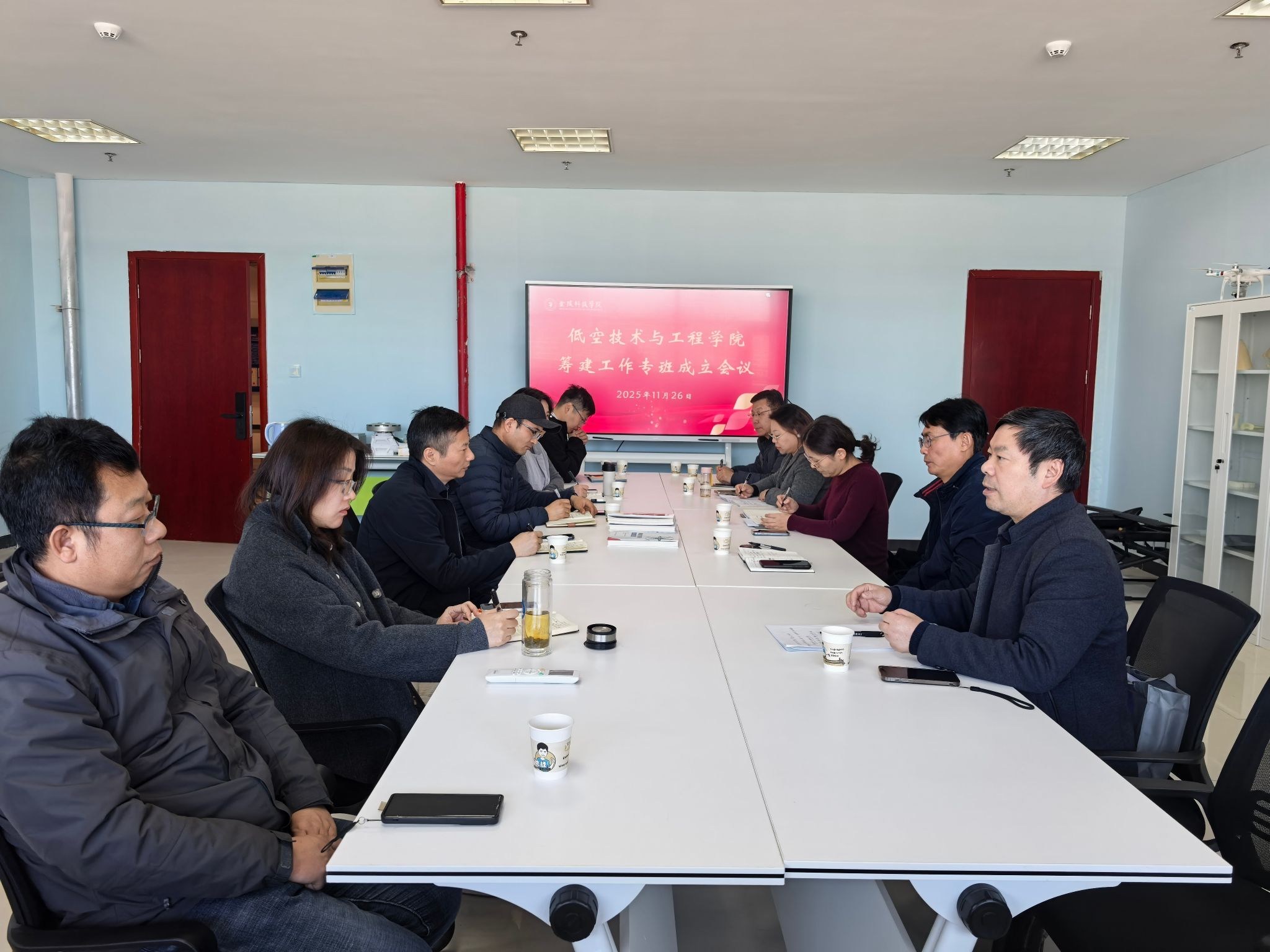 与会人员聚焦新学院筹建的四大关键领域进行了充分论证和周密部署。在资源对接方面,会议明确要积极整合校内外优质资源,一方面加强与学校相关职能部门的沟通协调,争取政策与资源支持;另一方面主动对接行业领军企业、科研院所,为学院的顺利启动奠定坚实基础。在实验室建设方面,会议强调要高起点规划、高标准建设,打造集教学、科研、实训于一体的现代化实验平台,为未来的人才培养和科研创新提供硬件保障。新专业申报工作作为新学院建设的重中之重,与会人员就专业定位、课程体系、人才培养方案等进行了细致的讨论,力求新专业既能精准对接产业需求,又具备鲜明的应用型特色。在科研规划上,会议则着眼于长远,提出要凝练学科方向,组建高水平科研团队,力求在低空飞行器设计制造、飞控网联、无人机载具身智能等前沿领域取得标志性成果。经过充分讨论,会议最终形成了清晰的任务清单,并逐一明确了各项工作的负责人与推进节点,构建了责任明确、协同高效的路线图与时间表。