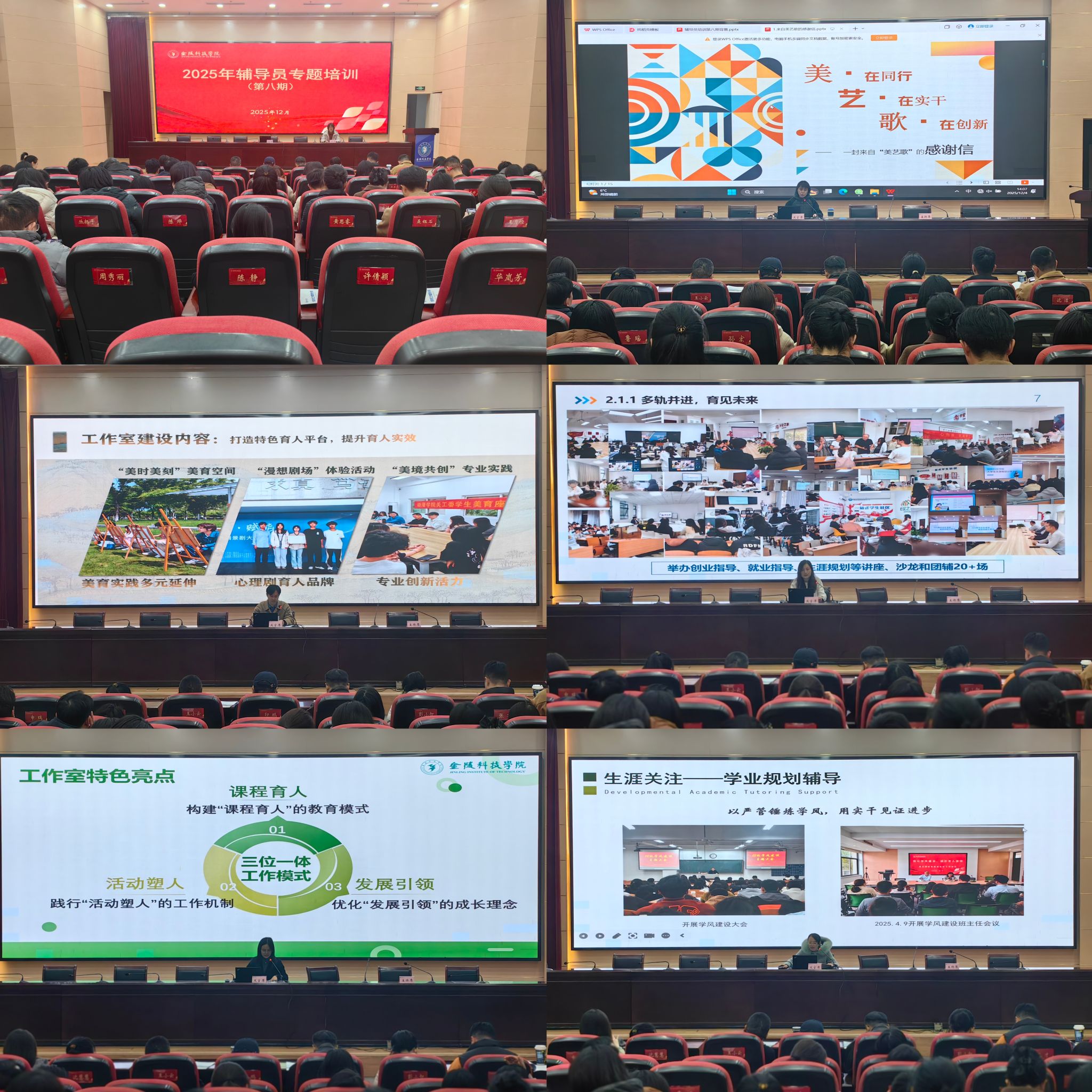分享交流环节中,6个处于建设中期的工作室主持人围绕立项以来的工作进展与阶段性成效展开分享,展示了各具特色、丰富多彩的活动及成果;2025年新立项的5个工作室主持人则聚焦工作室前期建设基础与特色做法进行交流,阐述了对辅导员专业发展与学生成长成才的预期作用。通过经验分享与思想碰撞,辅导员们以工作室为纽带,凝聚育人共识、汇聚专业力量、开拓工作视野、创新工作方法,切实实现“交流互鉴、共同提升”的目标。