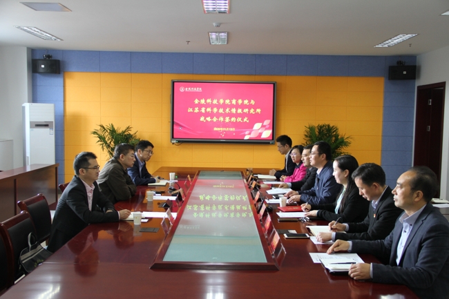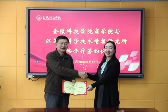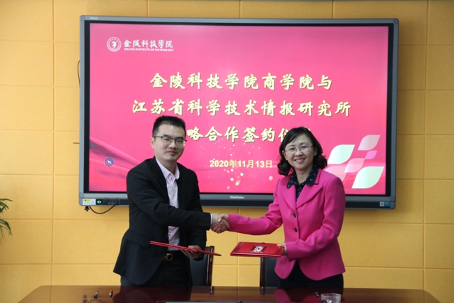 11月13日上午,商学院与江苏省科学技术情报研究所在科技楼3号楼409会议室举行了战略合作签约仪式。江苏省科学技术情报研究所所长、党委书记李敏,产业创新研究中心主任黄斌、办公室副主任王利军,kaiyun官网党委常委、党办主任、统战部部长黄洋,科技处副处长沈凌,商学院全体党政领导参加了此次签约仪式。会议由商学院副院长刘磊主持。