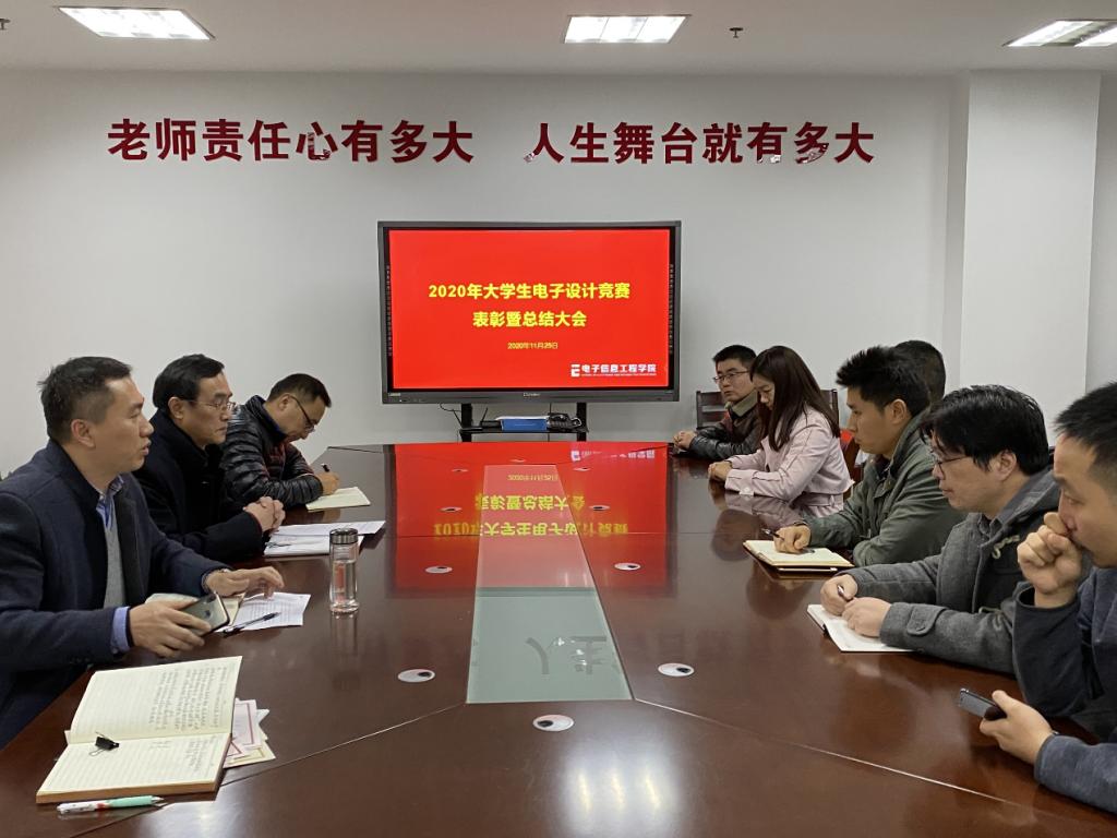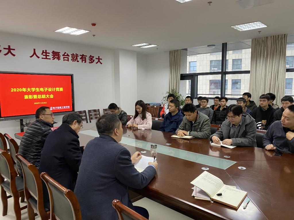 11月25日,电子信息工程学院2020年江苏省TI杯大学生电子设计竞赛表彰与总结大会在学院会议室举行。学院党委书记王昭诚、院长陈正宇、副院长徐志国、竞赛负责人单峡、竞赛指导教师代表及全体参赛学生参加了本次会议。