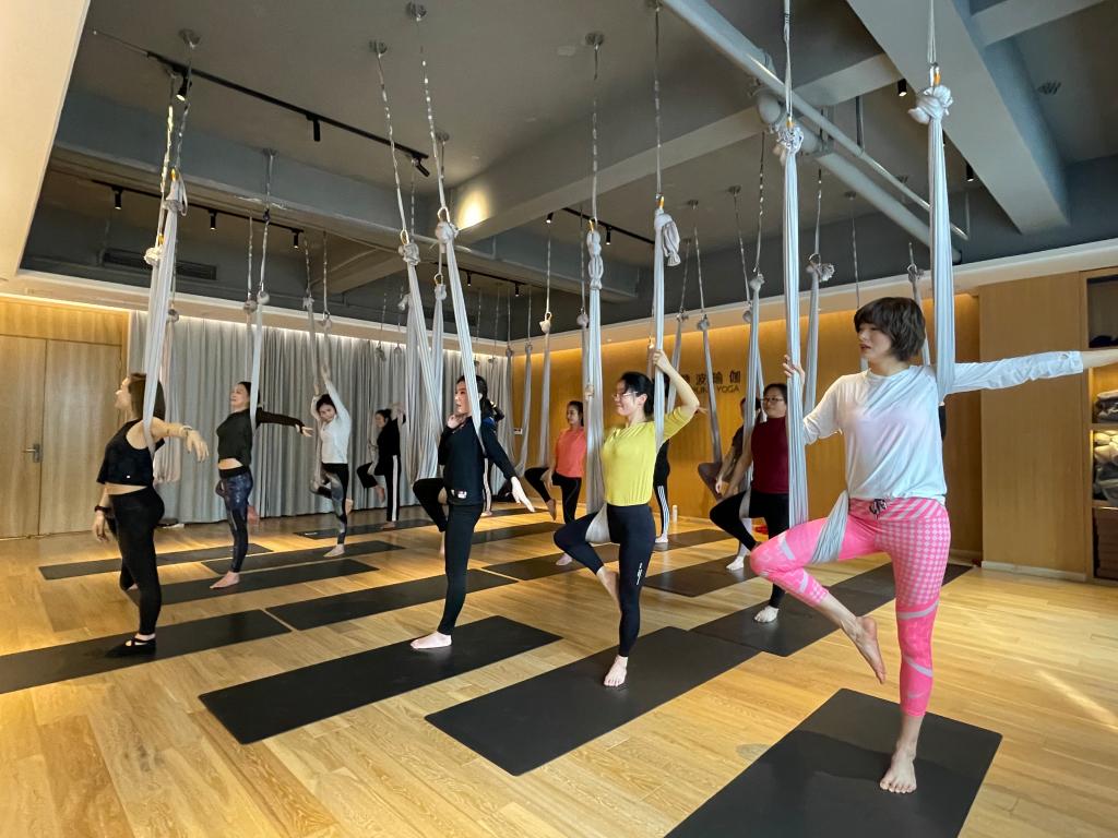 各位辛苦耕耘在教学一线的“女主播”们齐聚线下,换上瑜伽服来体验空中瑜伽。在舒展身体热身后,大家跟着瑜伽教练做优美的体式,享受漂浮半空的乐趣和彻底的放松身心。运动后大家坐在一起交流放松,整个过程充满欢声笑语。本次活动充分展现了体育部女教工“我运动、我健康、我快乐”的风采,实践了“让运动成为习惯,让生命更加精彩的”体育理念,激发了女教工健康向上的生活态度和工作热情。金科巾帼一定不负韶华、砥砺前行,将智慧与热情献给学校的教育事业。