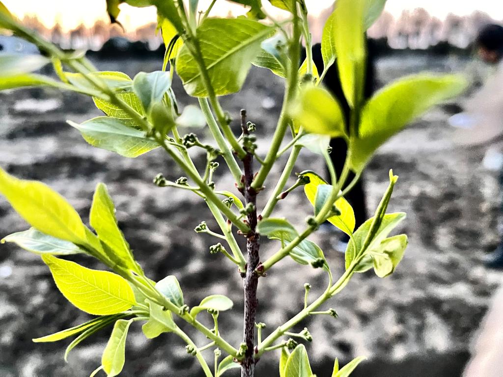 发展盐土农业,修复盐沼生态环境,是提高蓝色碳汇保护力度的迫切需要。盐土绿化,最迫切需要解决的问题是如何根据不同的含盐量选择相适应的树种。园艺园林学院桃叶卫矛科研团队协助东台市自然资源局对条子泥盐碱地进行桃叶卫矛栽种,所用种苗是团队独家繁育的耐盐品种,具有优良的抗逆性和适应性,对风沙和烟尘有较强的抵抗力,具有改善生态环境的经济和生态价值。此次活动,科研团队争做美丽森林的建设者,为江苏沿海盐碱地绿起来、美起来尽了一份责任。