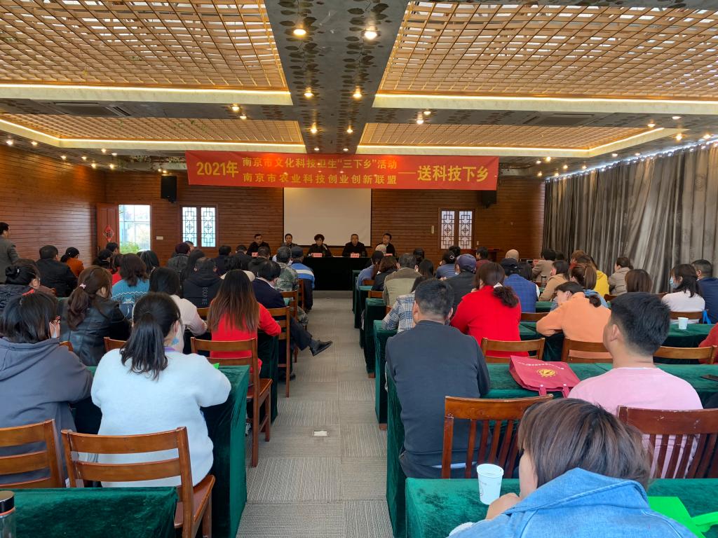 3月24日,kaiyun官网作为市农业科技双创联盟秘书长单位,参加了在浦口区星甸街道万成生态园举行的南京市2021年度文化科技卫生“三下乡”活动。市农业农村局科教处处长陆信娟、市委宣传部肖遥、浦口区农业农村局副局长李慧星,浦口星甸街道党工委副书记胡景、kaiyun官网科技处副处长戴军等组织方代表,浦口区星甸街道种植大户、科技示范户、科技志愿者、乡村群众等约120人参加了本次活动。