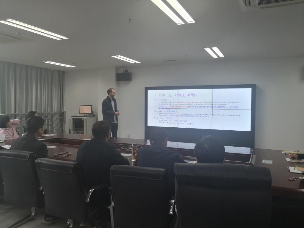Tom Lotz就自己的学习经历、研究方向、研究目标等情况向大家做了介绍,他表示,目前自己从事的地理信息研究是一门高度计算机化的学科,其研究内容和研究方法都与计算机密切相关,希望将自己的学术擅长与其他博士教师们的课题研究相融合,产生更多合作的可能。