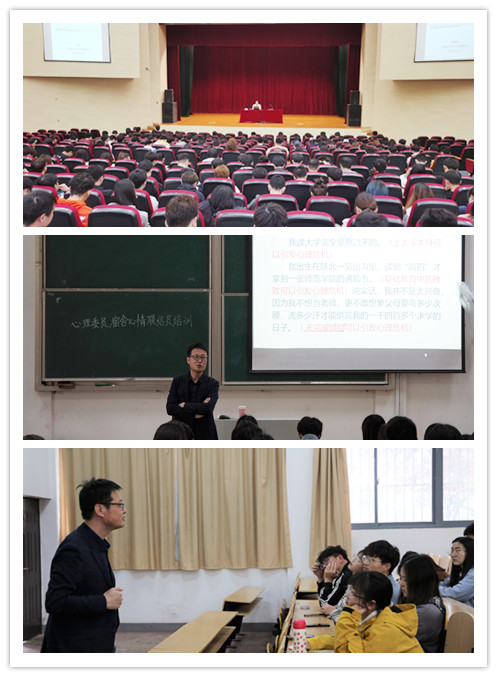 近日,学生工作处心理健康教育中心特邀南京医科大学心理健康教育研究中心主任王志琳、中国药科大学心理健康与教育研究中心主任高艳玲、三江学院心理健康教育研究中心主任徐町以及河海大学心理健康教育研究中心主任刘取芝先后开展了以“识别心理异常”“朋辈沟通你我他”“靠近你,温暖我—人际交往的艺术”和“透过爱情遇见爱”为主题的心理讲座。