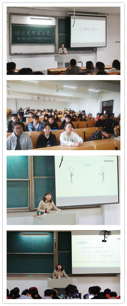 刘取芝讲解了“爱情”的内涵和意义,让学生们学会培养自我安全感、学会自我爱惜、发展出爱人爱己的能力。使学生了解人与人之间的交往,真诚和勇敢地沟通,构建属于自己的良性支持系统。