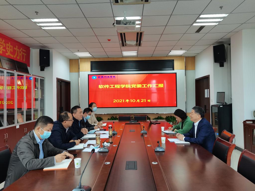 工作汇报会上,软件工程学院党委书记徐志国汇报了学院党委加强党建工作、履行主体责任、加强党员干部教育管理等方面的工作。院长曾岳汇报了学院今年来在党建引领下的学科建设、专业建设、科研工作、人才培养等方面的工作。
