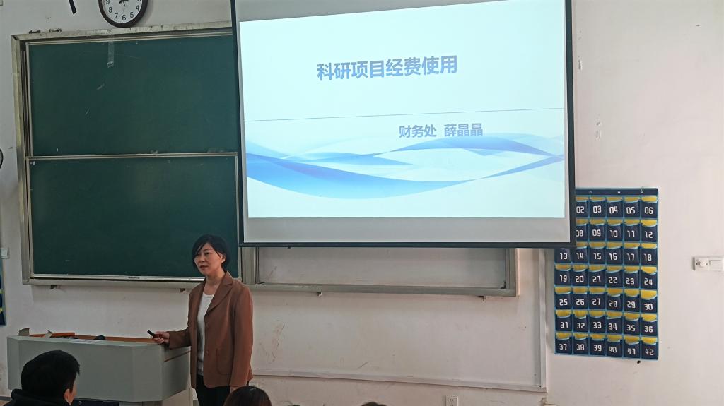 培训会上,薜晶晶从科研项目经费入账、科研项目经费开支范围、劳务申报与教科研设备购买、科研项目经费报销注意点以及网上自助报账系统填报的相关说明等五个方面,对大家在科研经费报销中关心的常见问题进行了详细讲解和现场答疑。