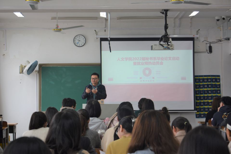 为进一步做好学生毕业论文和就业指导工作,11月17日至20日,人文学院分专业分场次举办了2022届毕业生毕业论文指导会暨就业动员会,院长张维亚、副院长赵步阳、党委副书记韩铖及各系主任、论文指导教师、就业干事参加了会议。