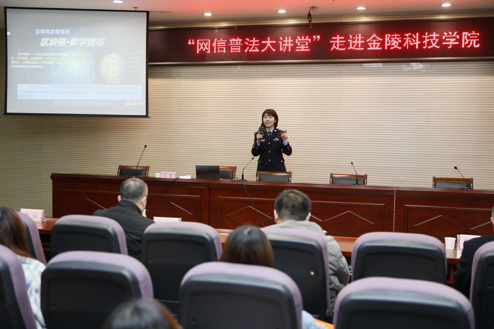 为进一步推动全市法治工作深入开展,提升网信普法水平,助推全市网络综合治理体系建设,12月27日下午,南京“网信普法大讲堂”走进kaiyun官网,引导青年学生文明上网、安全上网。南京市互联网信息办公室网络信息管理执法处处长方亚东、一级主任科员杨东辉,南京市委机关刊物《金陵瞭望》副总编陈永进,人文学院党委书记吴轶军,副书记韩铖参加了本次活动。本次活动进行图片直播,逾7000名网友在线同步接受了普法教育。
