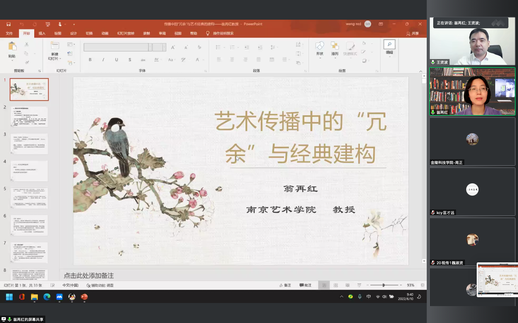 6月10日,动漫学院“美育大讲堂”学术月系列活动再次开启,邀请南京艺术学院艺术学艺术研究所博士生导师翁再红教授作题为《艺术传播中的“冗余”与经典解构》的讲座,动漫学院院长王贤波主持讲座,学院部分师生线上参加了讲座。