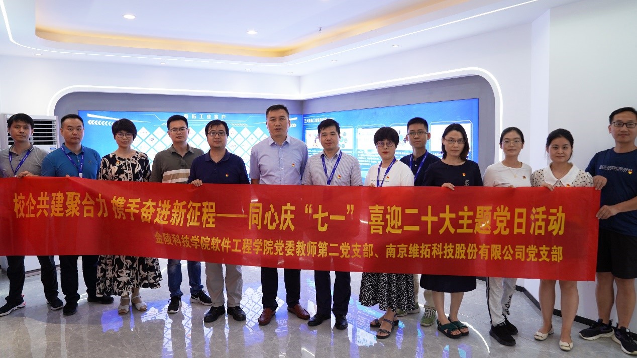 6月30日下午,软件工程学院与南京维拓科技有限公司举行“访企拓岗”暨“校企共建聚合力 携手奋进新征程——同心庆‘七一’喜迎二十大”主题党日活动。软件工程学院党委书记徐志国、院长曾岳、党委副书记徐斌、副院长胡勇、党员教师代表,南京维拓科技有限公司董事陈金华和副总经理、党支部书记丁亮、企业党员代表参加了活动。