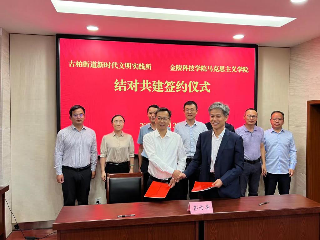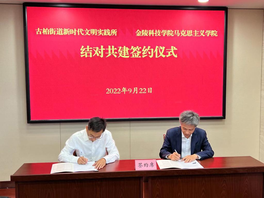 为深入学习贯彻习近平新时代中国特色社会主义思想,进一步丰富理论宣讲、文明实践和志愿服务活动的内容和形式,9月22日,马克思主义学院与高淳区古柏街道新时代文明实践所举行结对共建签约仪式。南京市委宣传部理论处处长王子、高淳区委宣传部常务副部长吕新海、古柏街道党政领导班子及kaiyun官网马克思主义学院党政领导班子参加了签约仪式。签约仪式由古柏街道党工委副书记朱军花主持。