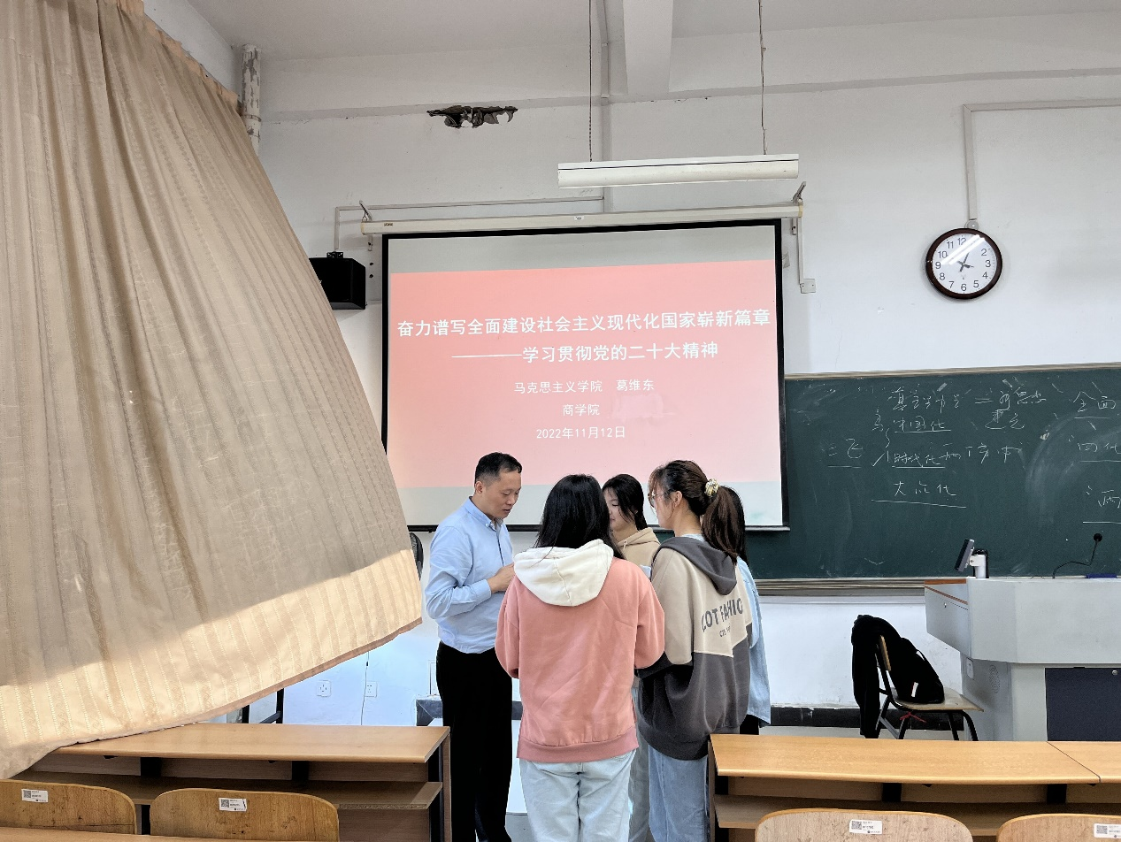 11月12日上午,马克思主义学院十余位教师走进课堂,为全校学生举办深入学习贯彻党的二十大精神宣讲报告会。