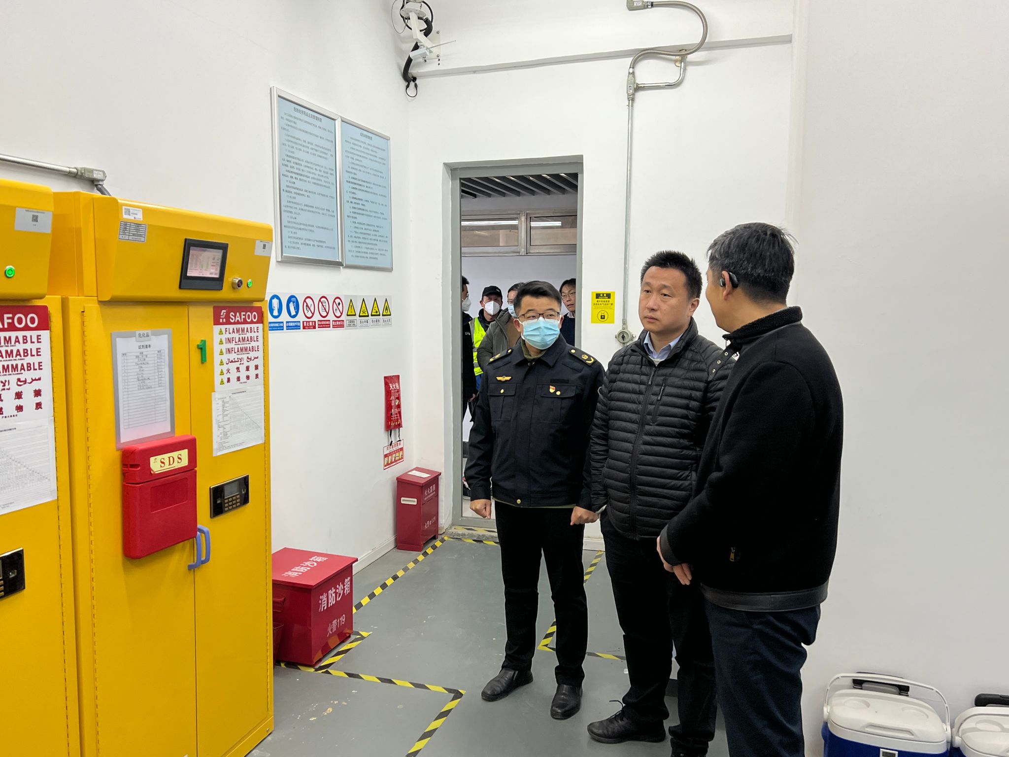 检查组一行围绕治安、消防、用电、食品等安全情况,重点检查了智慧安防中心、配电房、水泵房、危化品实验室、食堂等区域。