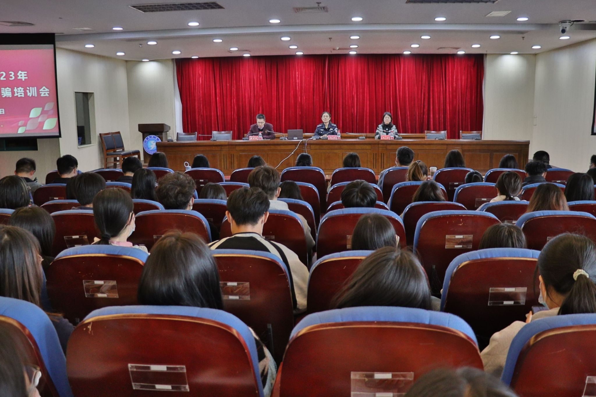 会上,李琳以案示警,结合高校真实鲜活的电信网络诈骗案例,用新颖活泼的授课方式,深入浅出地讲解新型电信网络诈骗的危害、特点和惯用手段,并进行现场问答互动。她指出,同学们一定要提高自身防范意识,不要被骗子营造的假象所迷惑,要学会用逆向思维和辐合思维,提升自己的反诈能力,遇到各种骗局做到“不理睬、不转账、不轻信、不汇款”。