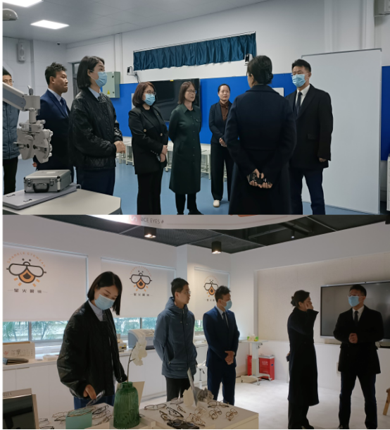 最后,郝凌云就视光产业学院建设与喻苗进行深入沟通。双方就专业人才培养、教学基地建设、产教融合与共建产业学院等问题达成一致意见,建立初步合作意向。与会领导和专家共同参观实验室并合影留念。