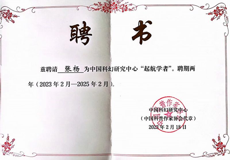 中国科幻研究中心自2023年起推出“起航学者”计划,联合高校科幻平台青年科幻研究实验室共同打造“青年储备人才”库。自2022年12月发布招募通知以来,共收到申请200余份。经过综合评定,共遴选出“起航学者”20名,“青年储备人才”30名。人文学院汉语国际教育系张杨博士入选为首批“起航学者”。