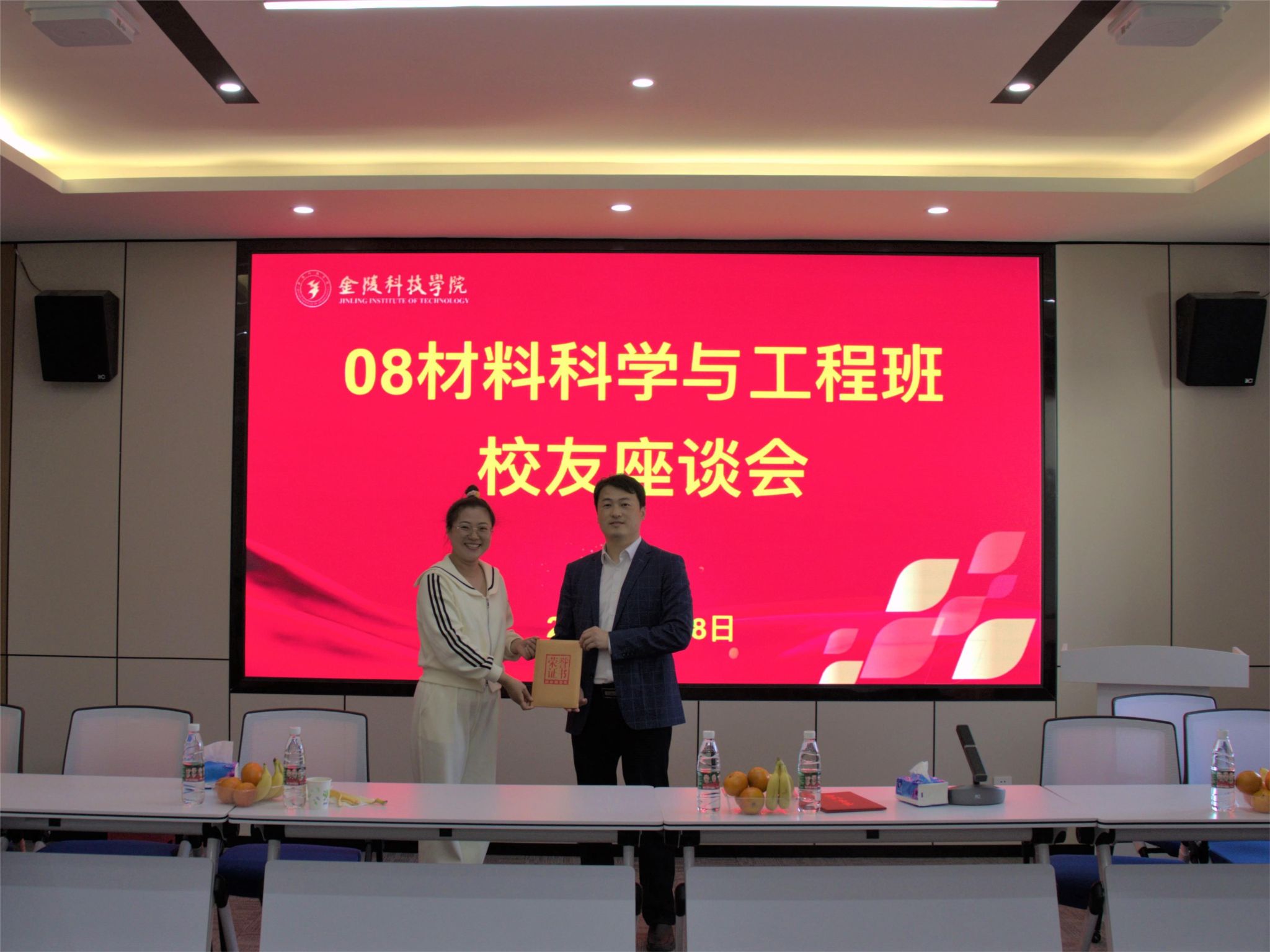 活动分为校友座谈会、校内参观和校友捐赠三部分。在座谈会上,叶原丰代表学院对从各地重返母校的校友表示热烈的欢迎、对学院发展建设中校友们给予的关心和支持表示感谢,鼓励大家不忘初心、再续华章。在叶原丰、华岚芳、王敏的陪同下,08级校友们参观了校史馆、学院实验室和校园环境。校友们通过一张张照片、一段段影像共同追忆往昔旧事,展望金科未来前景。通过叶原丰介绍的学院现阶段高、精、尖仪器设备与新兴技术,校友们切实感受到了学院十年间的巨大变化并为学院的蓬勃发展感到由衷的自豪。此次回校,08级材料科学与工程班校友捐赠景德镇花瓶一对,校友所在企业江苏禾易企业管理集团有限公司将设十万元“禾易奖助学金”用以奖励、资助材料工程学院在校学子。叶原丰为校友代表颁发捐赠证书,在花瓶下合影留念,本次08级校友活动圆满结束。