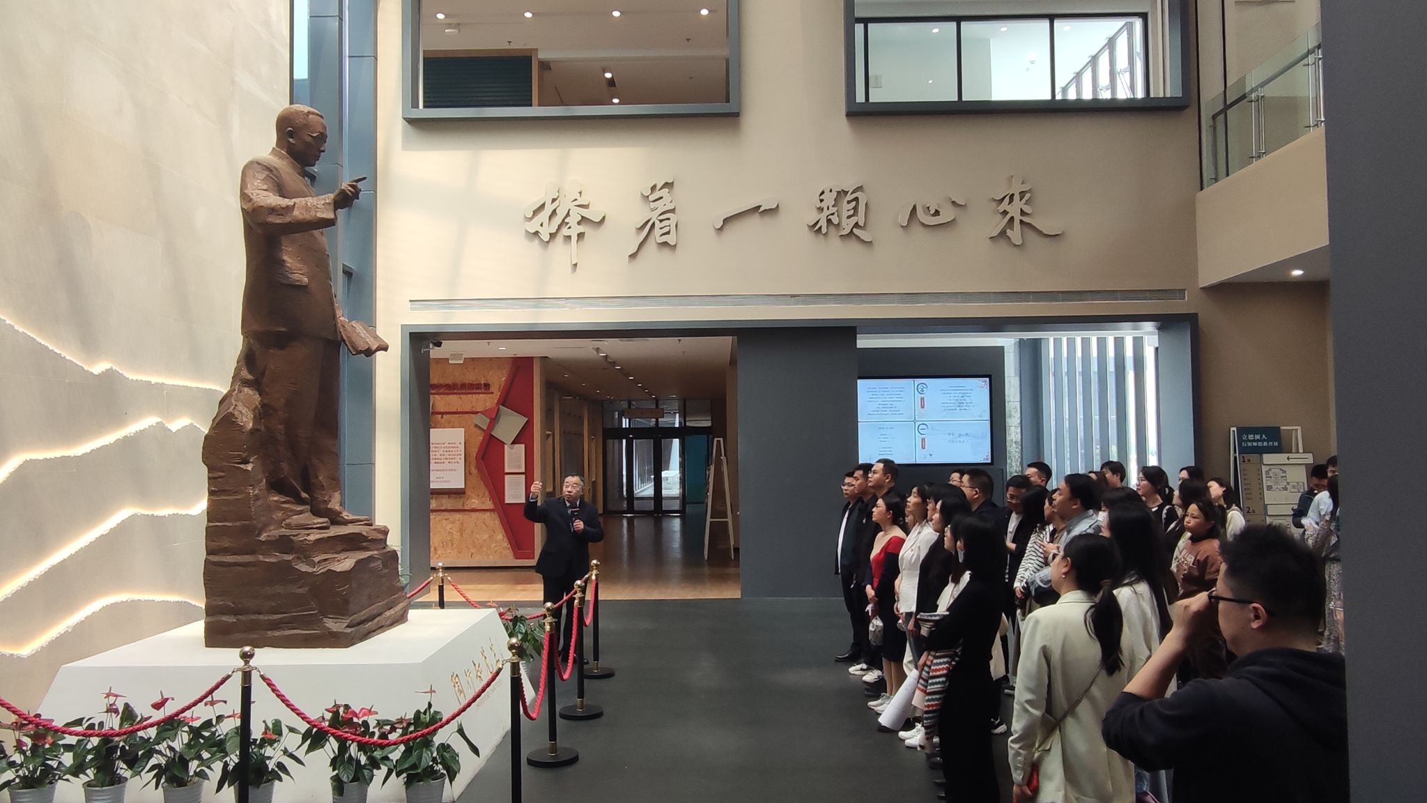 吴轶军带领全体辅导员参观师德教育馆并进行生动详细地讲解。辅导员们仔细观看馆内陈列的文物和图文资料,用心体会陶行知先生成为伟大人民教育家的艰辛历程,深刻感悟陶先生“爱满天下,乐育英才”“千教万教教人求真,千学万学学做真人”“生活即教育,社会即学校,教学做合一”等教育理念,感受一代教育家的伟大风范,同时对照思考自己的教育之路。
