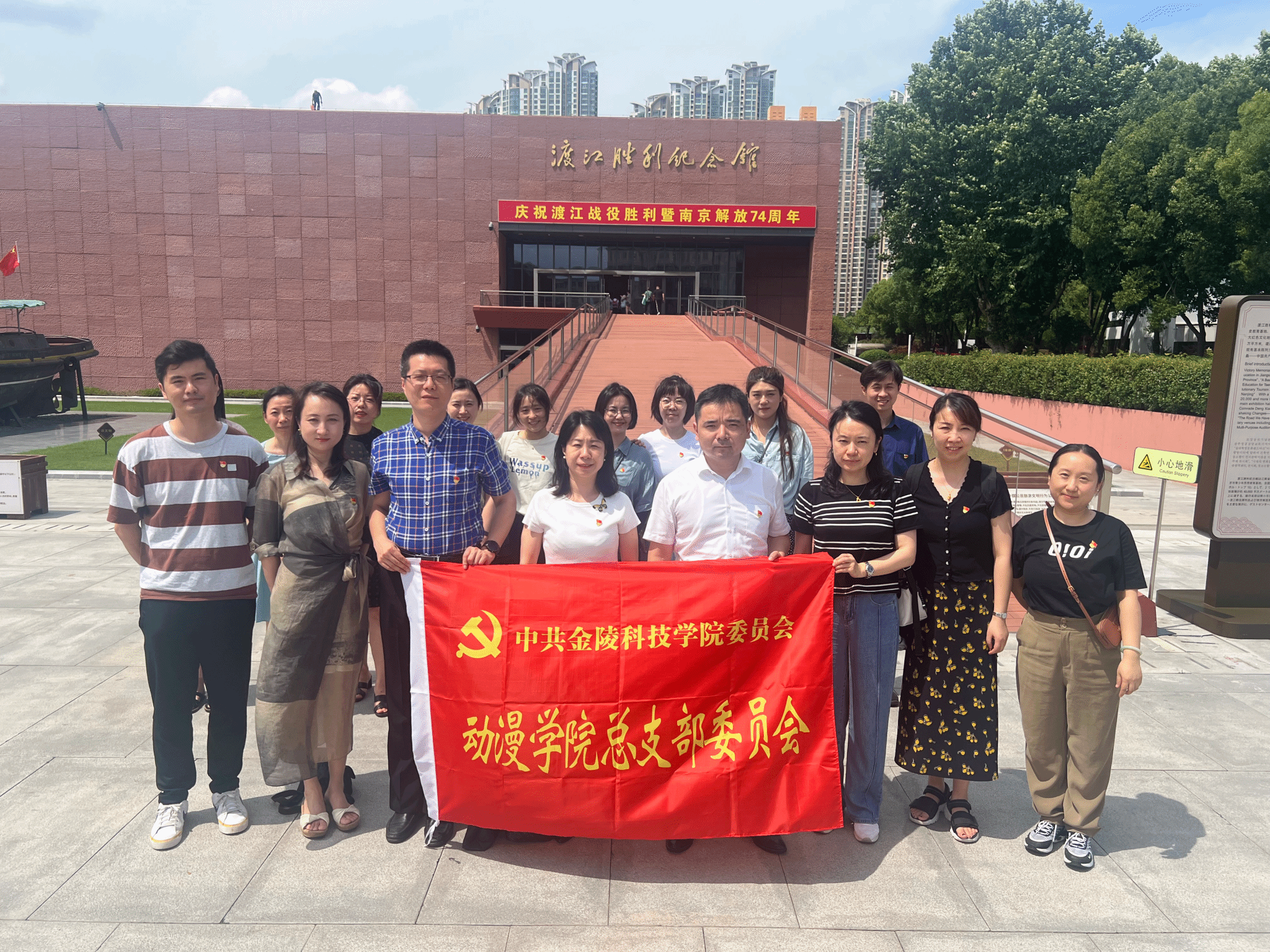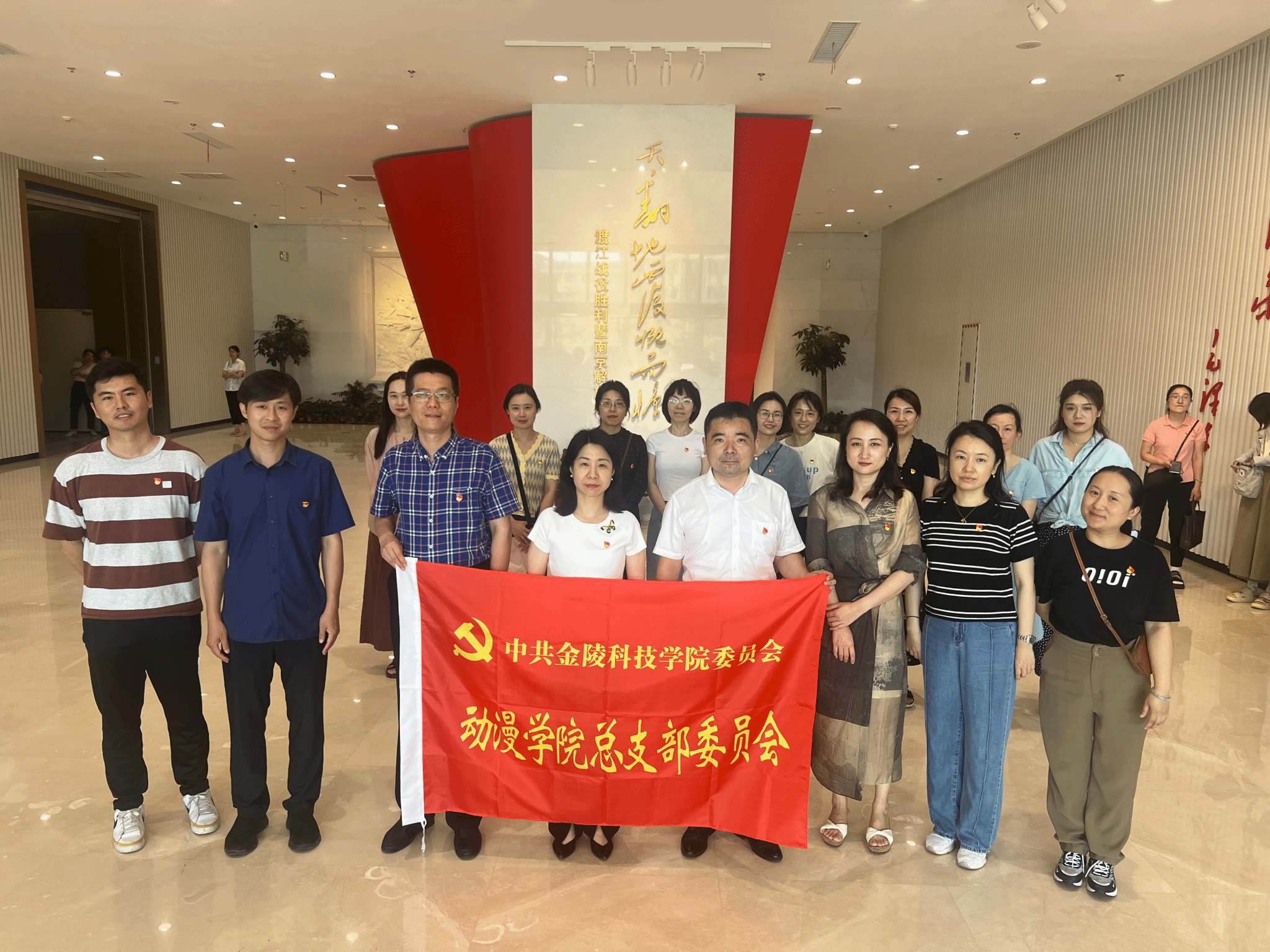 为回顾党的光辉历程,营造浓厚的爱党爱国氛围,积极响应在校党委“七一”活动方案号召,6月28日下午,动漫学院党总支部书记赵宁带领学院教工党员前往渡江胜利纪念馆,缅怀革命烈士,纪念渡江战役的伟大胜利,并开展重温入党誓词活动。