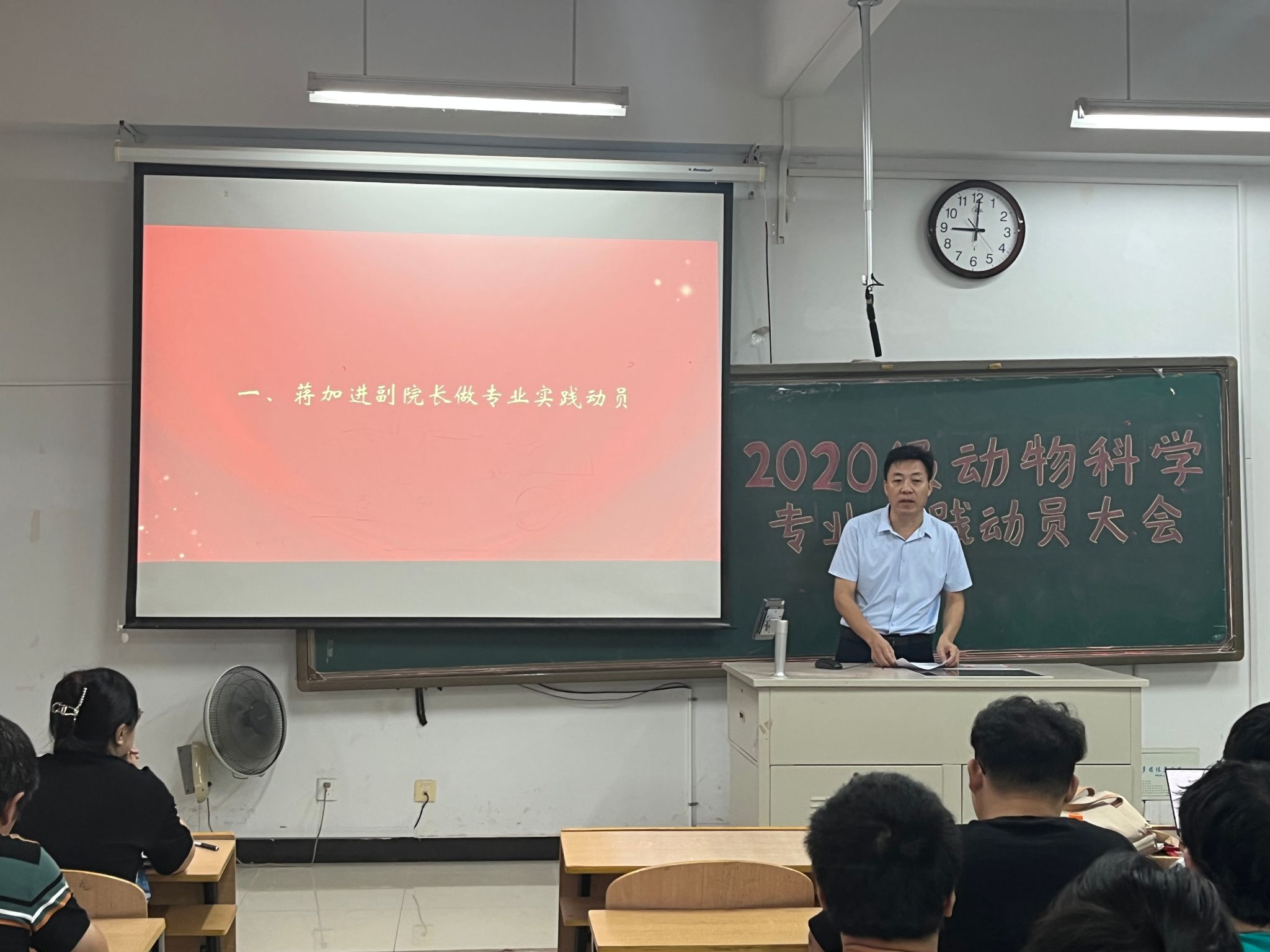 为做好动科专业学生专业实践工作, 9月12日上午,动科学院在图教楼B201召开了2020级动物科学专业实践动员大会。动科学院党委副书记黄淑婧、副院长程泽信、副院长蒋加进及动物科学系部分老师出席动员大会。动科学院动物科学专业所有2020级学生参加会议。大会由2020级辅导员魏鹏主持。