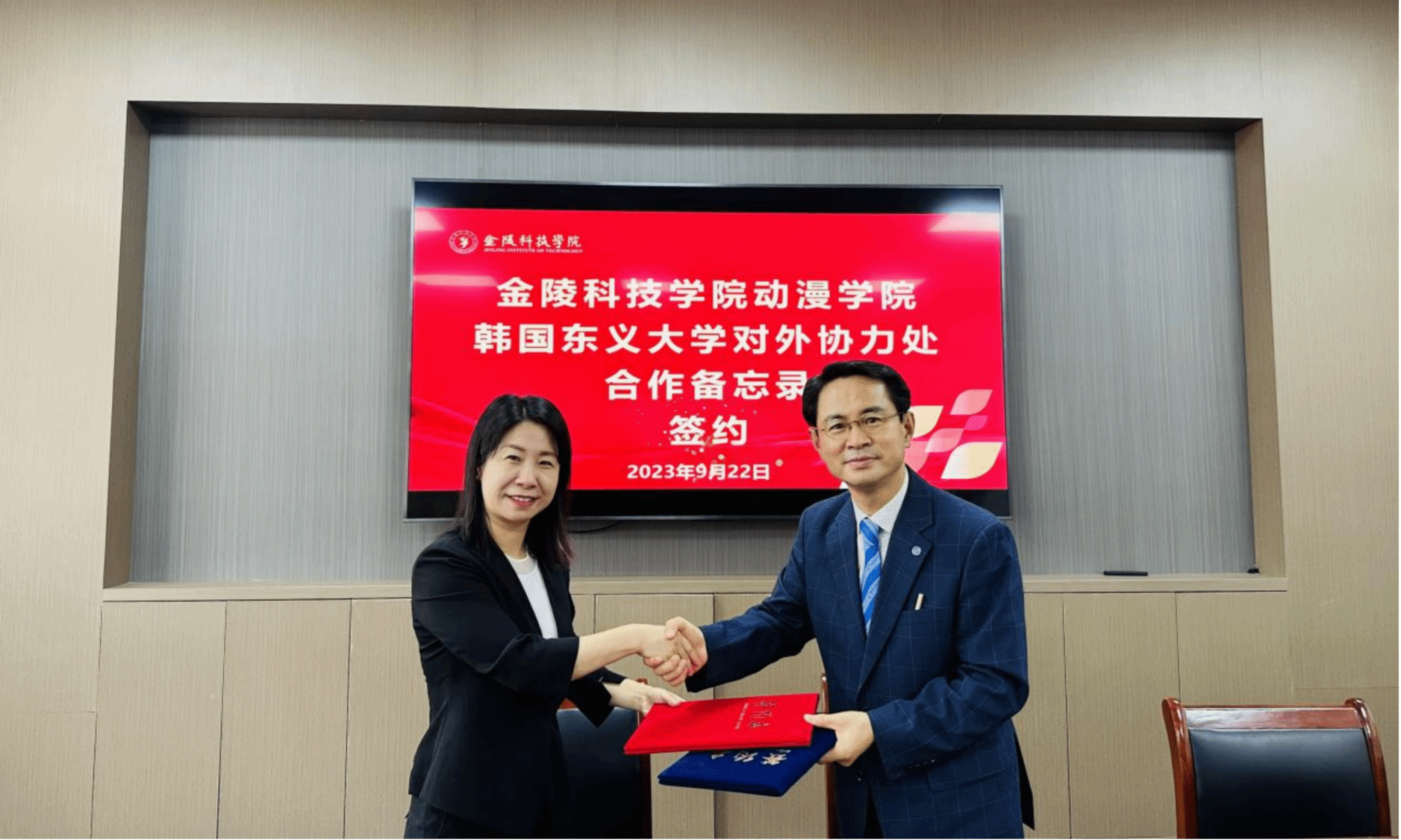 赵宁为讲座做了总结,希望大家都能从讲座中获得新的启示和灵感,深入思考并积极探索未来的可能性。讲座后,赵宁代表动漫学院与金致龙在7406会议室签订了合作备忘录。未来双方将通过现有合作机制,有效利用双方教育和产业资源,共同推动人才培养高质量发展。