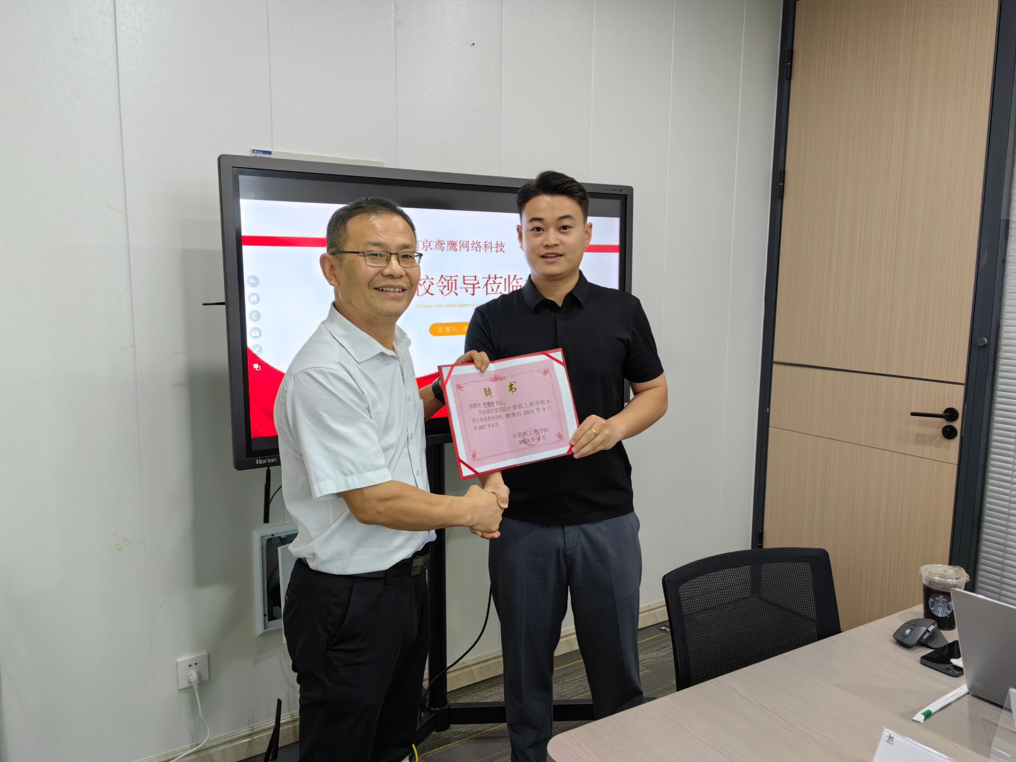 9月26日下午,计算机工程学院院长田祥宏、副书记张昊带队访问了校友企业南京鸢鹰网络科技有限公司,与2019届校友、南京鸢鹰网络科技有限公司总经理叶楷何共同探讨企业发展的新机遇和挑战。本次访问旨在加强校企合作,助力企业可持续发展,拓宽毕业生就业实习渠道。