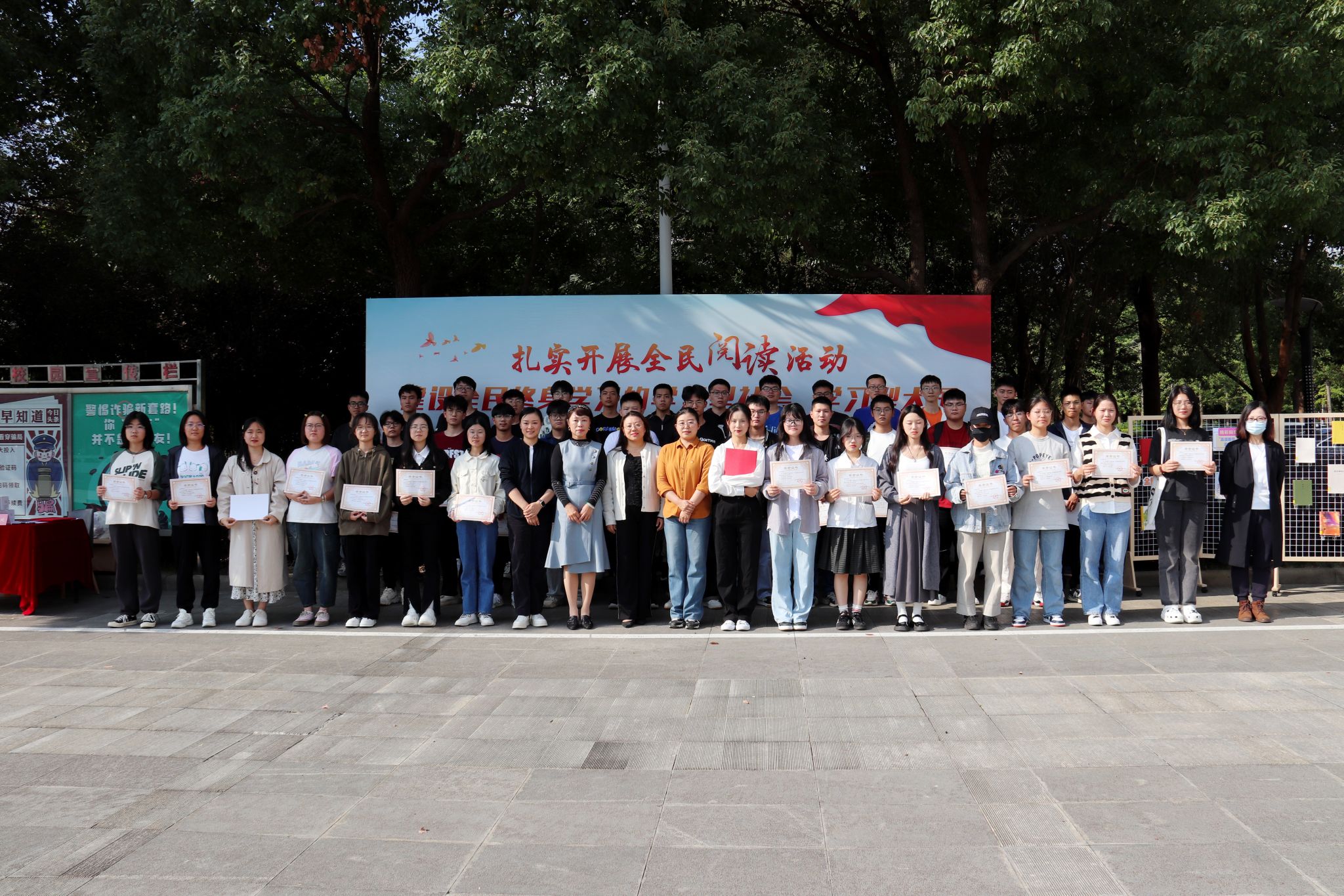 图书馆馆长唐亦玲、机电工程学院党总支副书记张蓉向获奖学生颁发了证书和奖品。机电工程学院学生王泽秀和罗伊然发表了获奖感言,表示“手捧书籍,就是手捧希望”,倡导大家“用心去感悟每一册书籍,去领悟人生”。