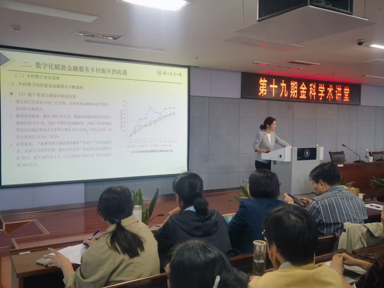 11月1日,商学院承办kaiyun官网第19期金科学术讲堂,南京农业大学金融学院博士生导师、省重点智库金善宝农业现代化发展研究院副院长周月书教授应邀作题为《数字化赋能金融支持乡村振兴》的高水平学术报告。商学院副院长史新和主持了本次报告会。