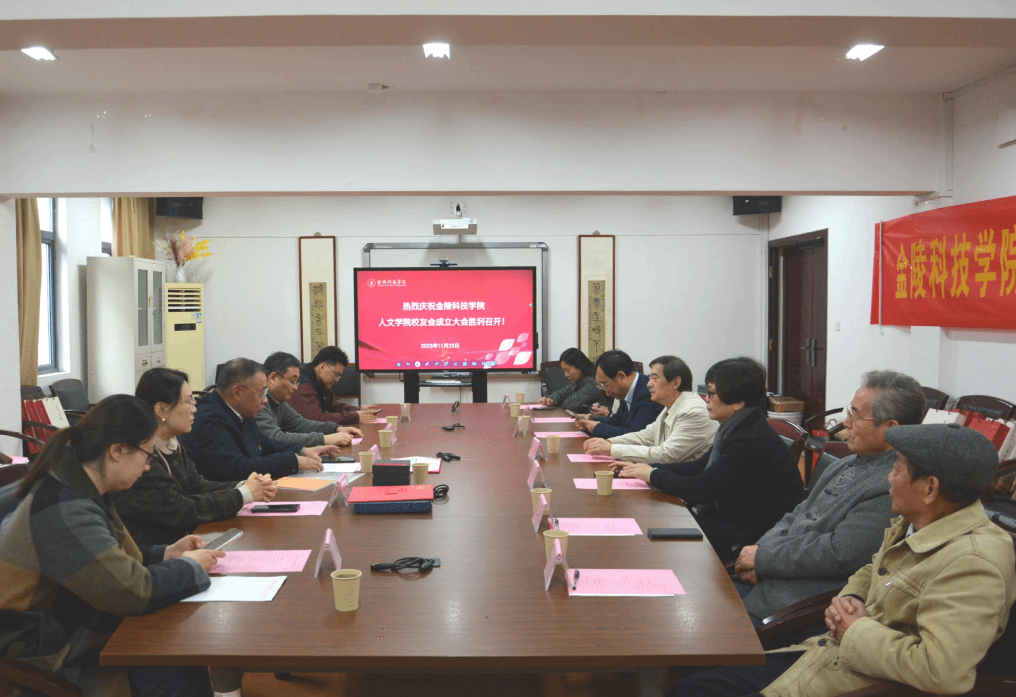 原金陵职业大学文法系87级政教、曾担任上市公司金鹰商贸集团副总裁,现担任省级跨境电商产业园-南京八卦洲跨境电商产业园高级顾问张冬梅;原金陵职大1983届干部中文班,南京博达投资公司董事长康涛;原金陵职大1983届干部中文班、一级巡视员、南京市物价局原局长、南京市人大常委会法制工作委员会原主任夏德智;原金陵职大1983届干部中文班、当代著名国画大师,南京市文联原副秘书长兼办公室主任李正刚;原金陵职大1983届干部中文班、南京发改委原处长徐伟等校友出席了校友会成立大会。