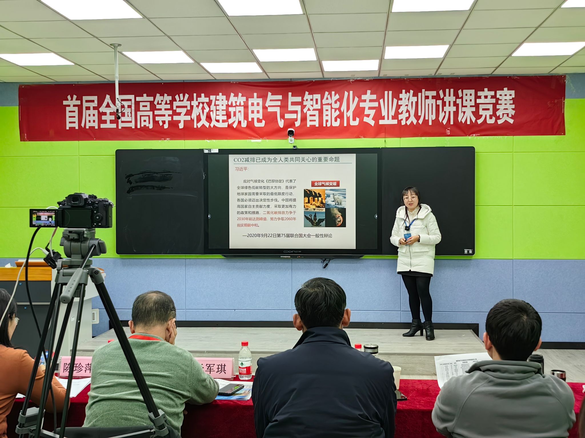 本届竞赛面向列入《高等学校建筑电气与智能化本科专业指南》的课程,分为专业基础课、专业核心课和专业课三个组别,以线下形式现场讲课。徐雷老师的参赛课程为专业核心课《建筑智能环境学》,刘莎老师的参赛课程为专业核心课《建筑设备自动化系统》,陈霄老师的参赛课程为专业核心课《建筑智能化系统集成技术》。