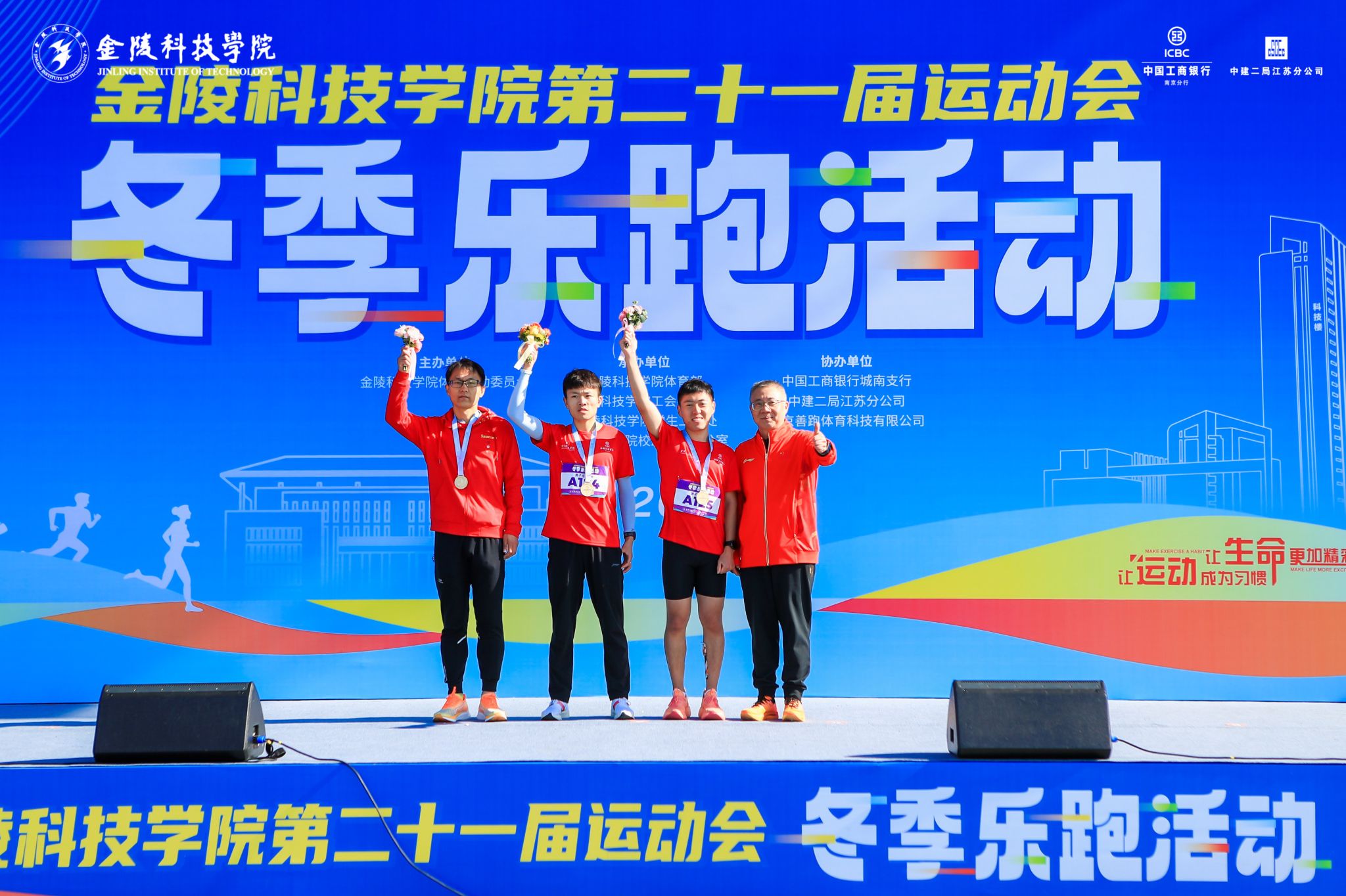 副校长高永祥为获得校友男子8公里前三名颁奖