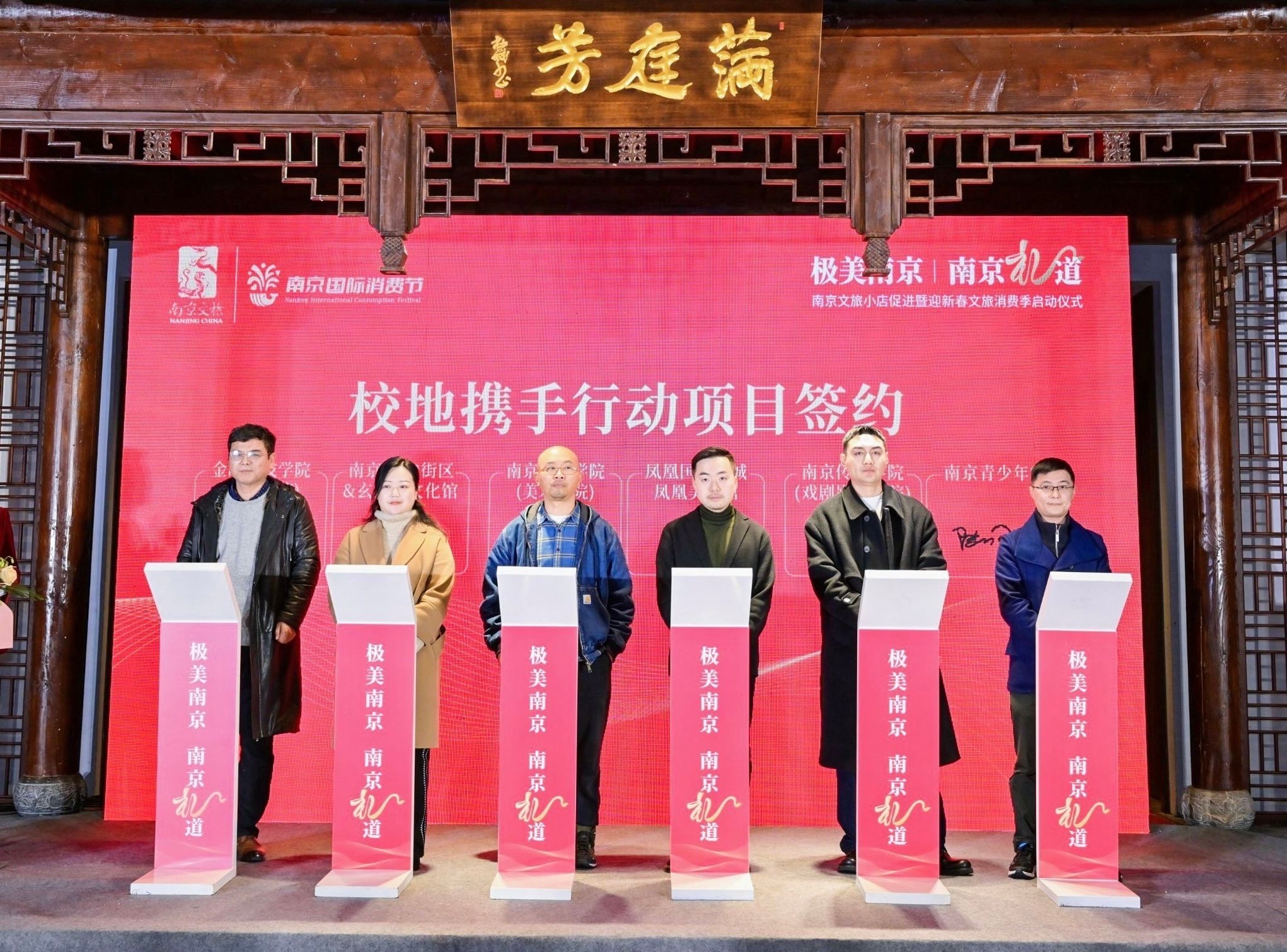 为进一步促进校地“资源共享、优势互补、合作共赢”,巩固校地合作成果,推进校地合作项目落地,助力南京文化和旅游产业高质量发展。1月19日,在南京市文化和旅游局、南京市商务局、南京市市场监督管理局主办的“极美南京 南京礼道”——南京文旅小店促进暨迎新春文旅消费季启动仪式上,举行校地携手行动项目签约仪式。
