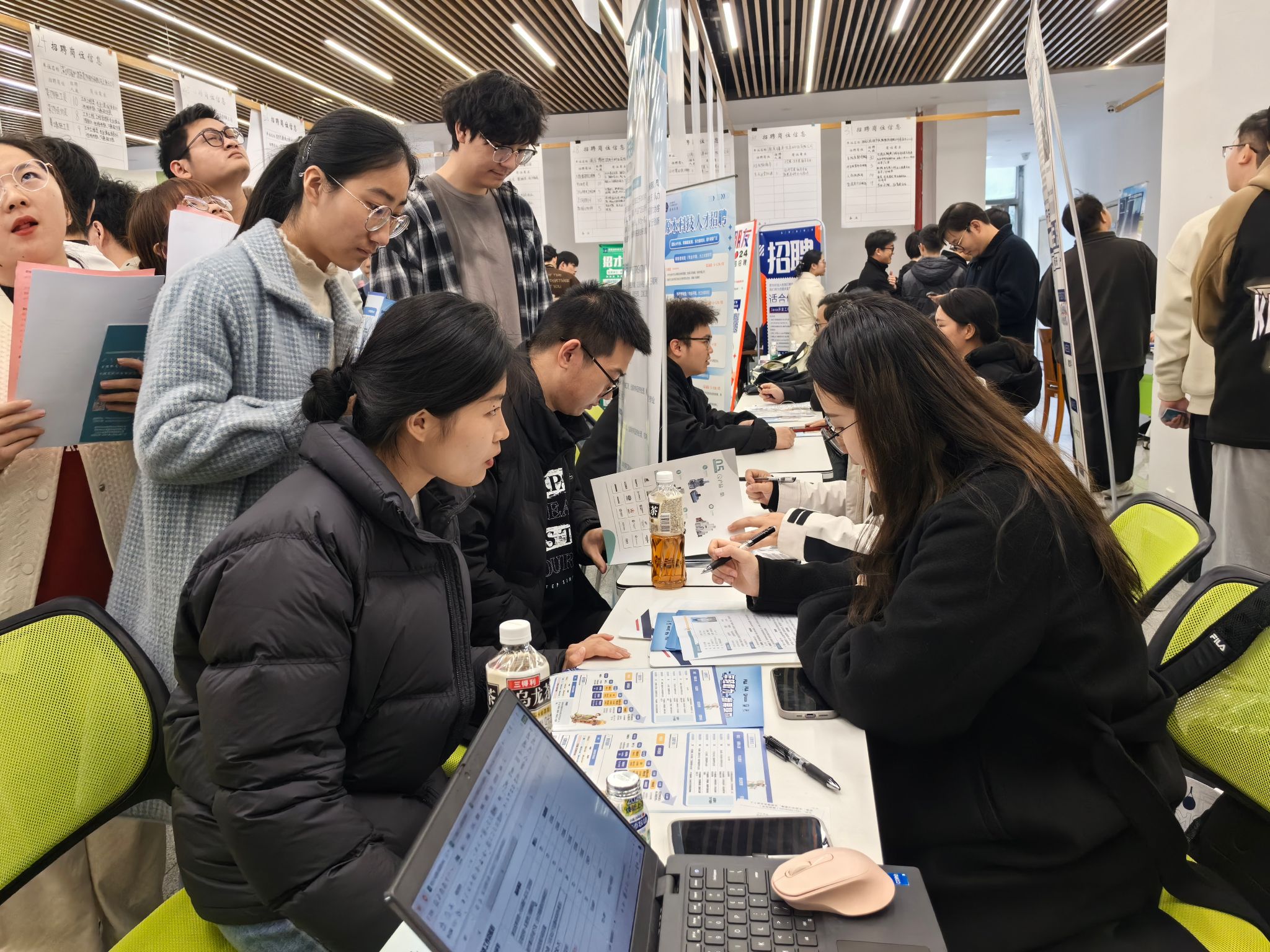 招聘会吸引大批学生进场,学生们热情高涨,科技企业招聘摊位前排满了求职毕业生,大数据、新能源、新材料应用、能源动力等“新质生产力”岗位受到毕业生热捧。毕业生们纷纷表示,校园招聘会单位数量多、岗位覆盖广、与专业契合度高,是他们顺利就业的主战场。用人单位也普遍反映,本届毕业生整体质量高、专业素质强,踏实肯干,有较强的学习能力和创新能力,非常符合招聘需求。