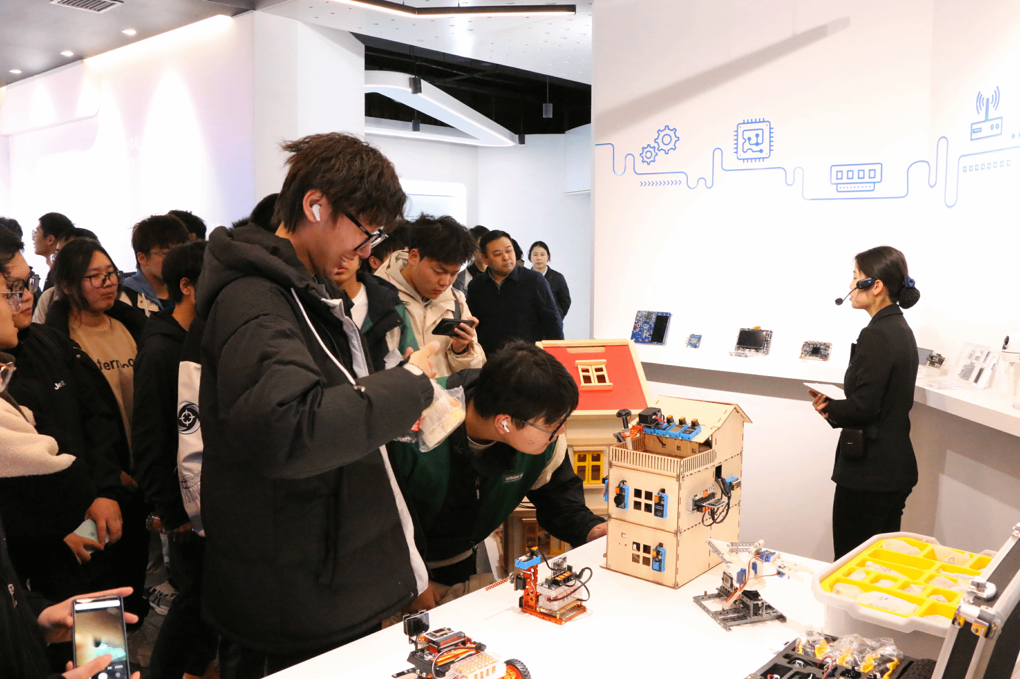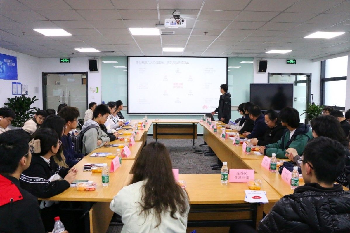 活动最后一站是中软国际-华为云创新中心,学生们参观了企业展区,主要了解了创新中心在开源领域的人才培养模式、创新成果及市场应用。据了解,从2023年开始,中软国际-华为云创新中心为激活区域开源相关上下游产业和企业,凝聚行业共识,驱动软件谷开源新生态,引领“开源进谷”,打造具有“南软”特色的开源生态。创新中心依托华为20年深耕的开源项目技术创新和价值主张以及中软国际开源创新解决方案,联动开放原子开源基金会、开源社区等,举办开源技术沙龙、开源生态大会等多场人才培养活动,面向企业、高校及个人开发者,赋能开源治理以及创新中心在开源方向相关的实践。专家给学生们介绍了开源项目的技术架构、实现难点及解决方案,让学生对开源项目的实现有了更加深入的认识。交流互动中,创新中心副总经理及技术专家对学生提出的技术、就业等方面的问题进行解答。学生在了解企业对开源人才的需求及培养方式之后,更加清晰了自己的学习目标。