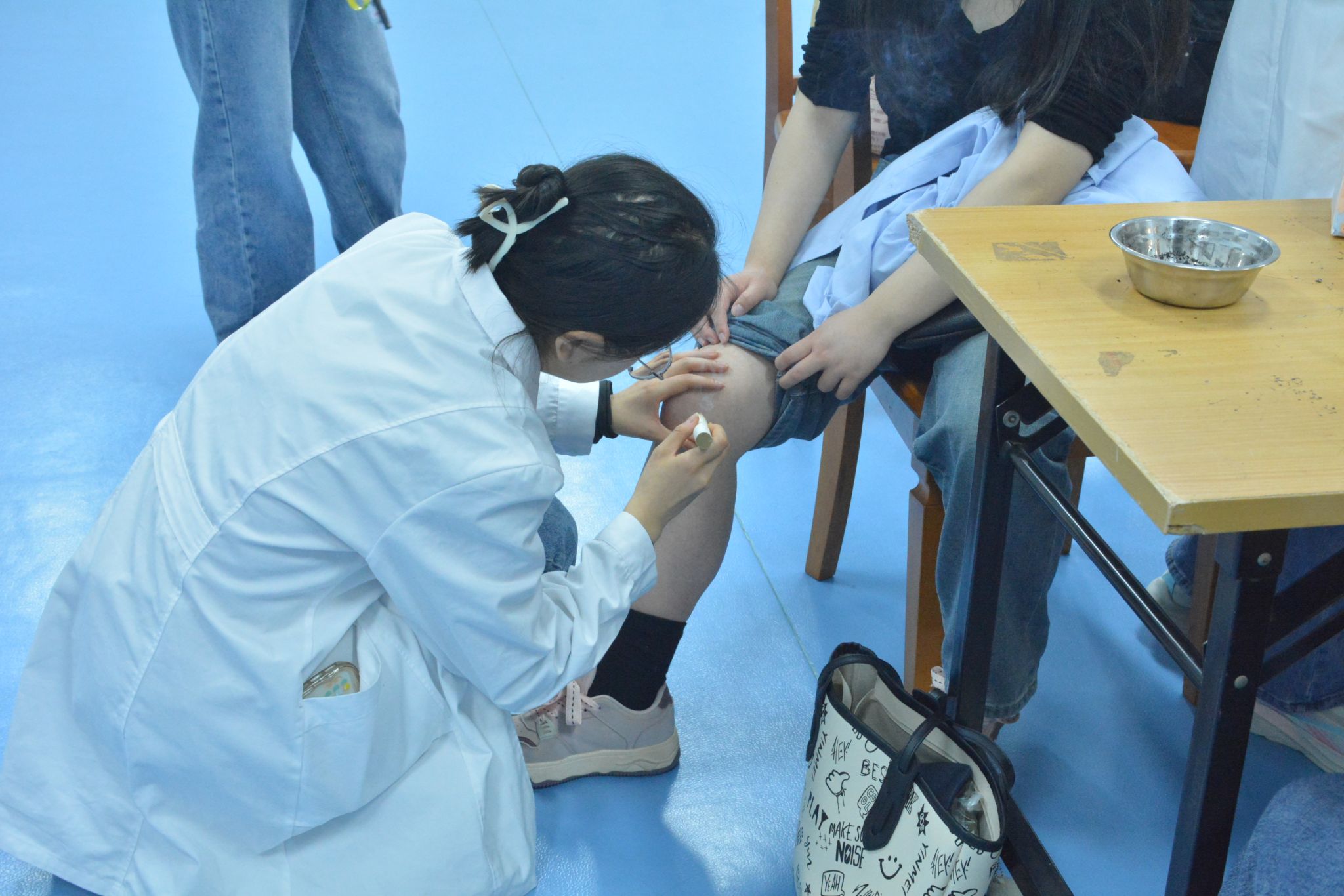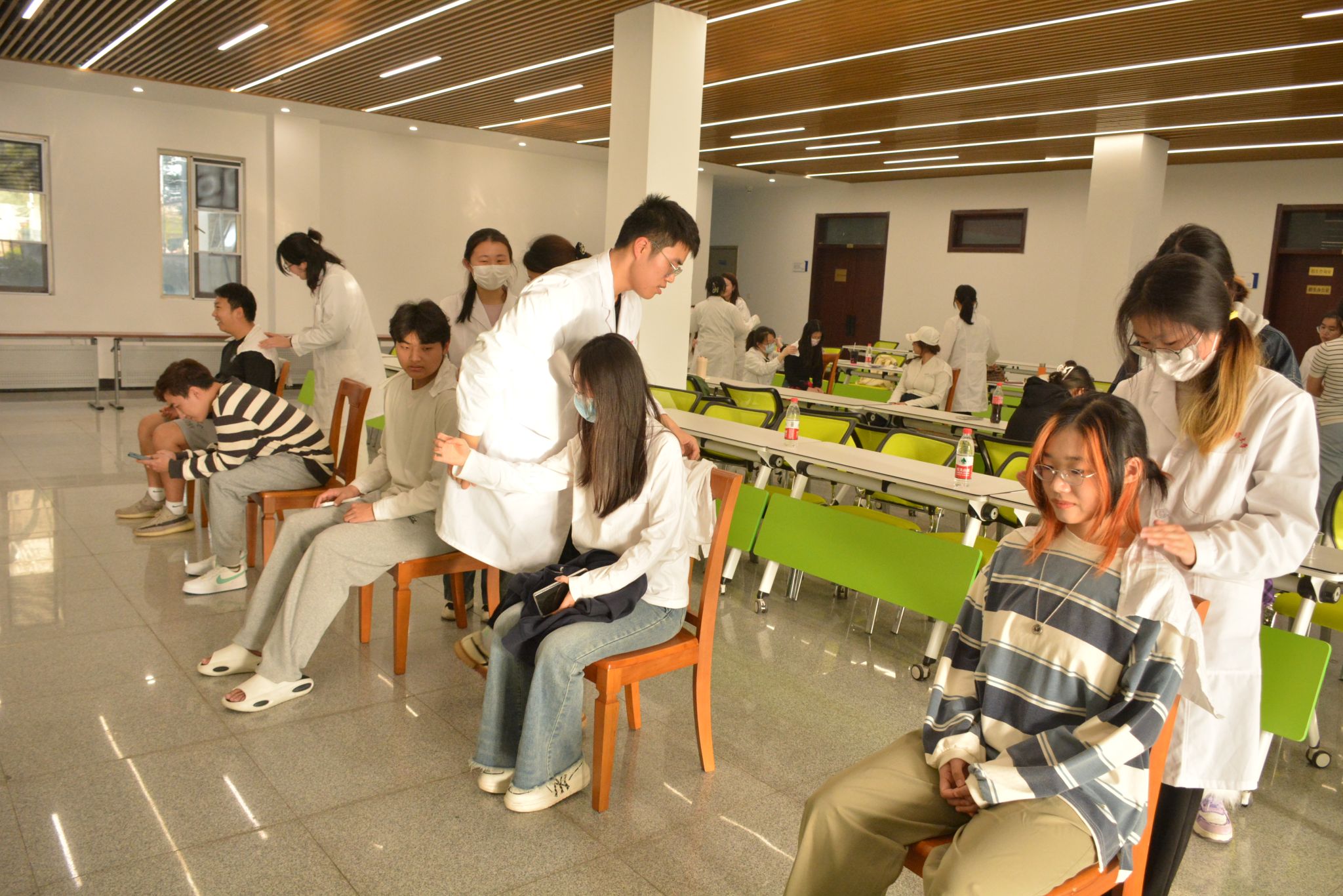 志愿者们细心地为kaiyun官网就诊同学量血压、细致地讲解了药材的作用,并推荐了几种适合大部分同学的配方,义诊志愿者针对同学们长时间久坐、低头等引起的肩颈和腰部问题,为kaiyun官网同学进行了专业的中医推拿,帮助同学们疏通经络、放松肌肉、减轻身体压力。