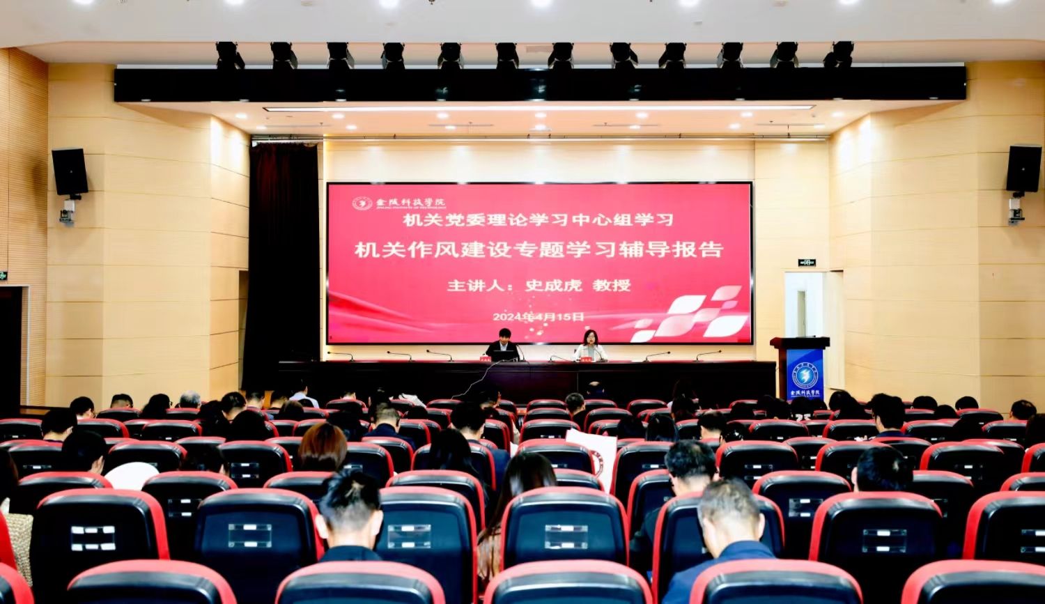 4月15日下午,机关党委在科技楼报告厅召开理论学习中心组学习会。南京市委党校史成虎教授应邀作“机关作风建设”专题辅导报告。机关党委全体处科级干部、内设业务部门负责人参加学习会,会议由机关党委书记张远凤主持。